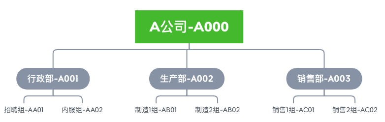 A公司的组织架构如下图,核算部门有生产部、销售部,非核算部门有行政部。