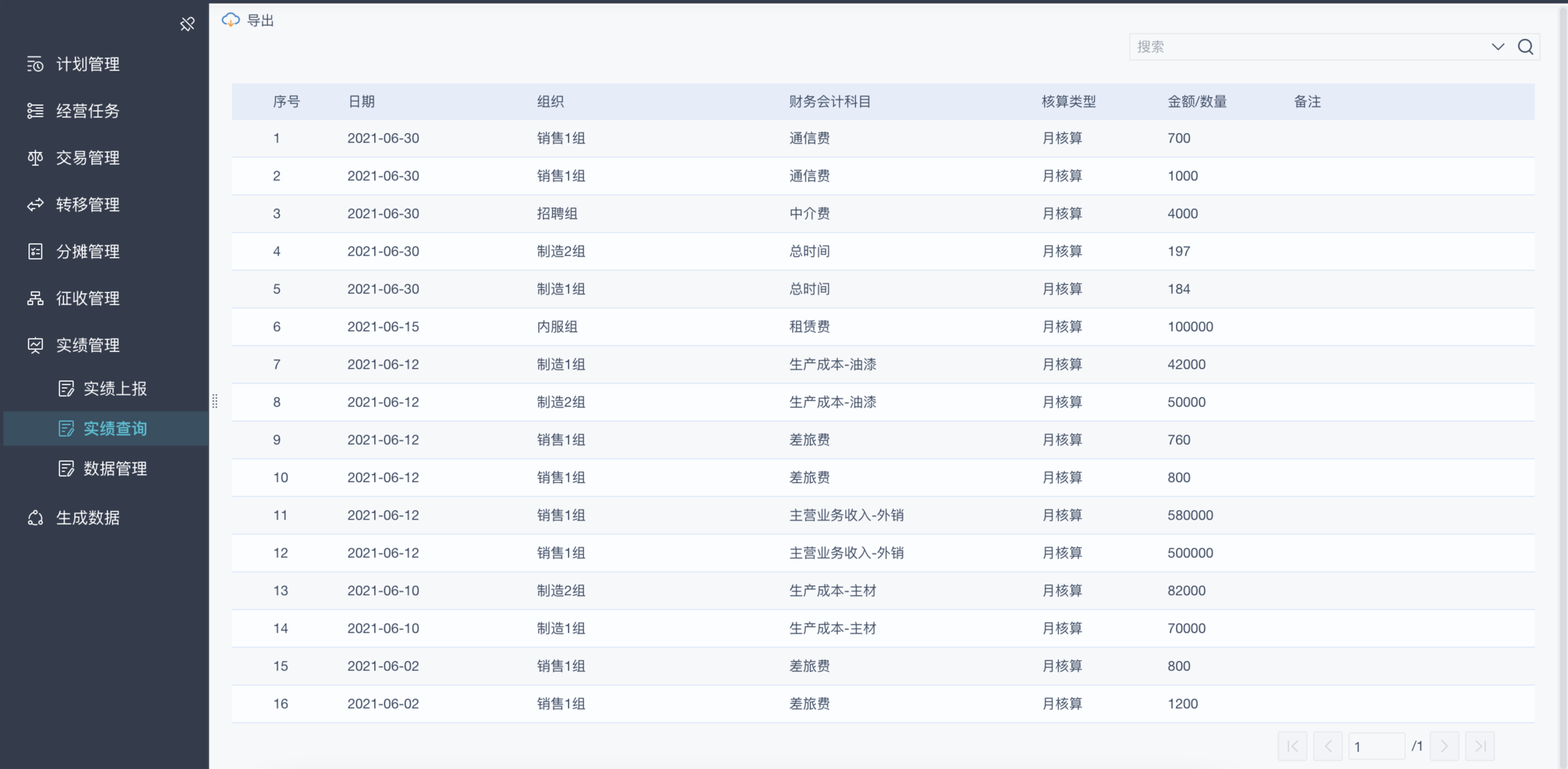 上报后,通过「实绩查询」可看到上报的数据如下: