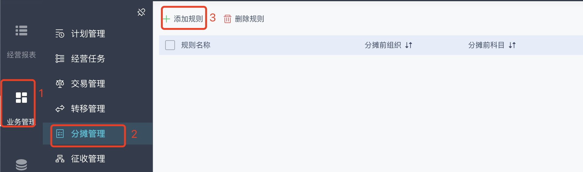设置界面:业务管理-分摊管理