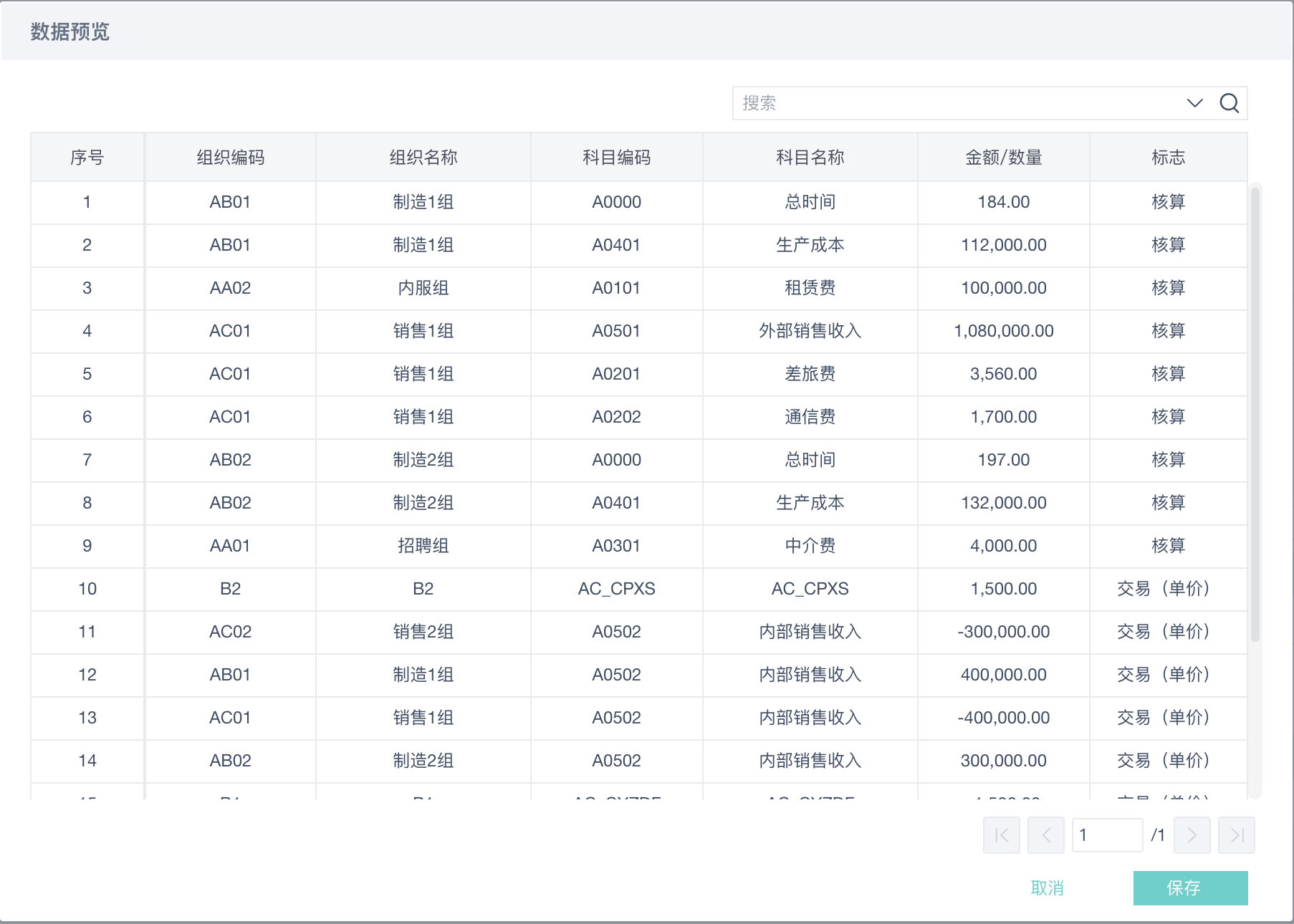 导入完成后,财务会计科目、阿米巴科目显示如下: