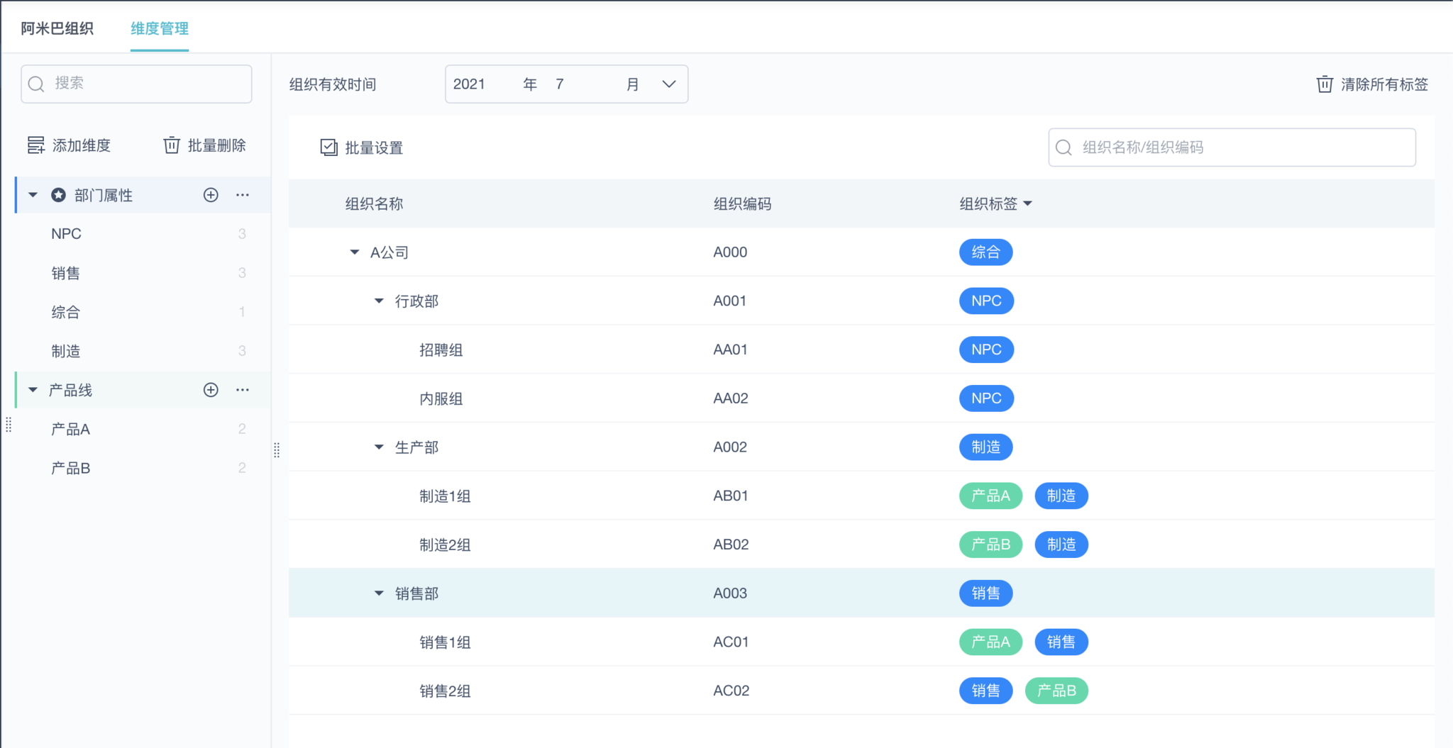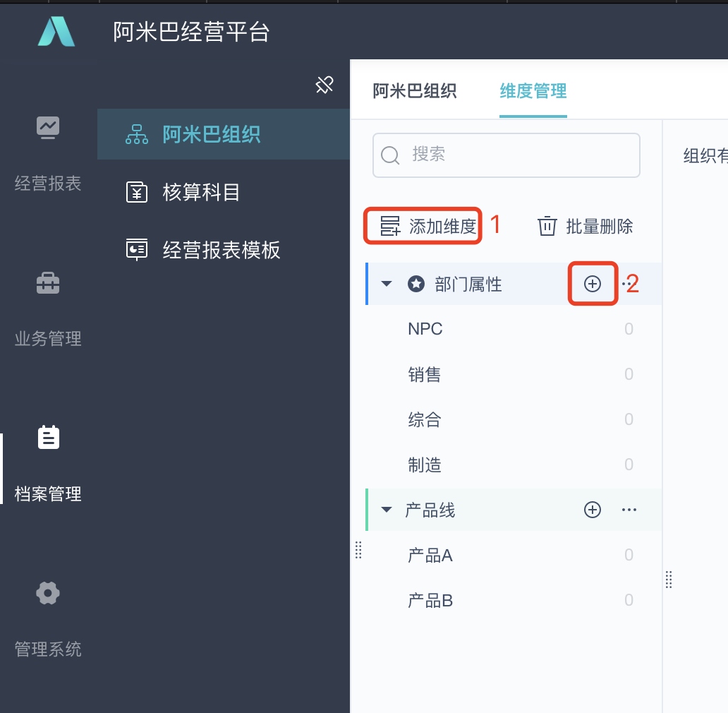 不同类型的组织、不同核算维度,在系统中通过“组织维度”实现,在导入组织前,我们先创建所需的组织维度,维度管理详细说明见阿米巴组织-维度管理。