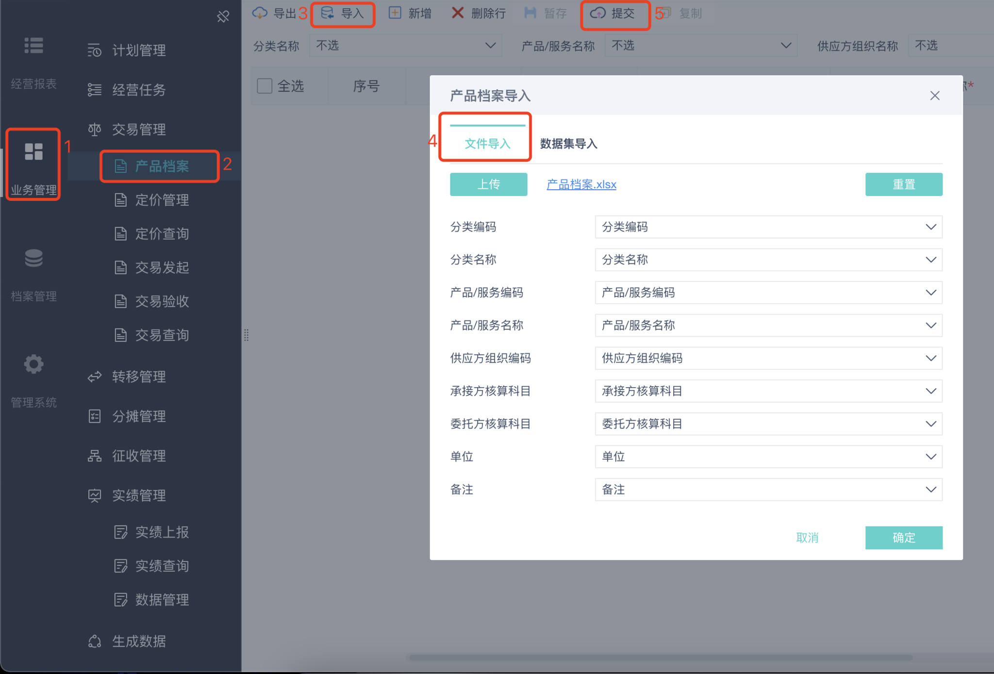 4.1 首先在「产品档案」页面定义可交易的产品/服务: