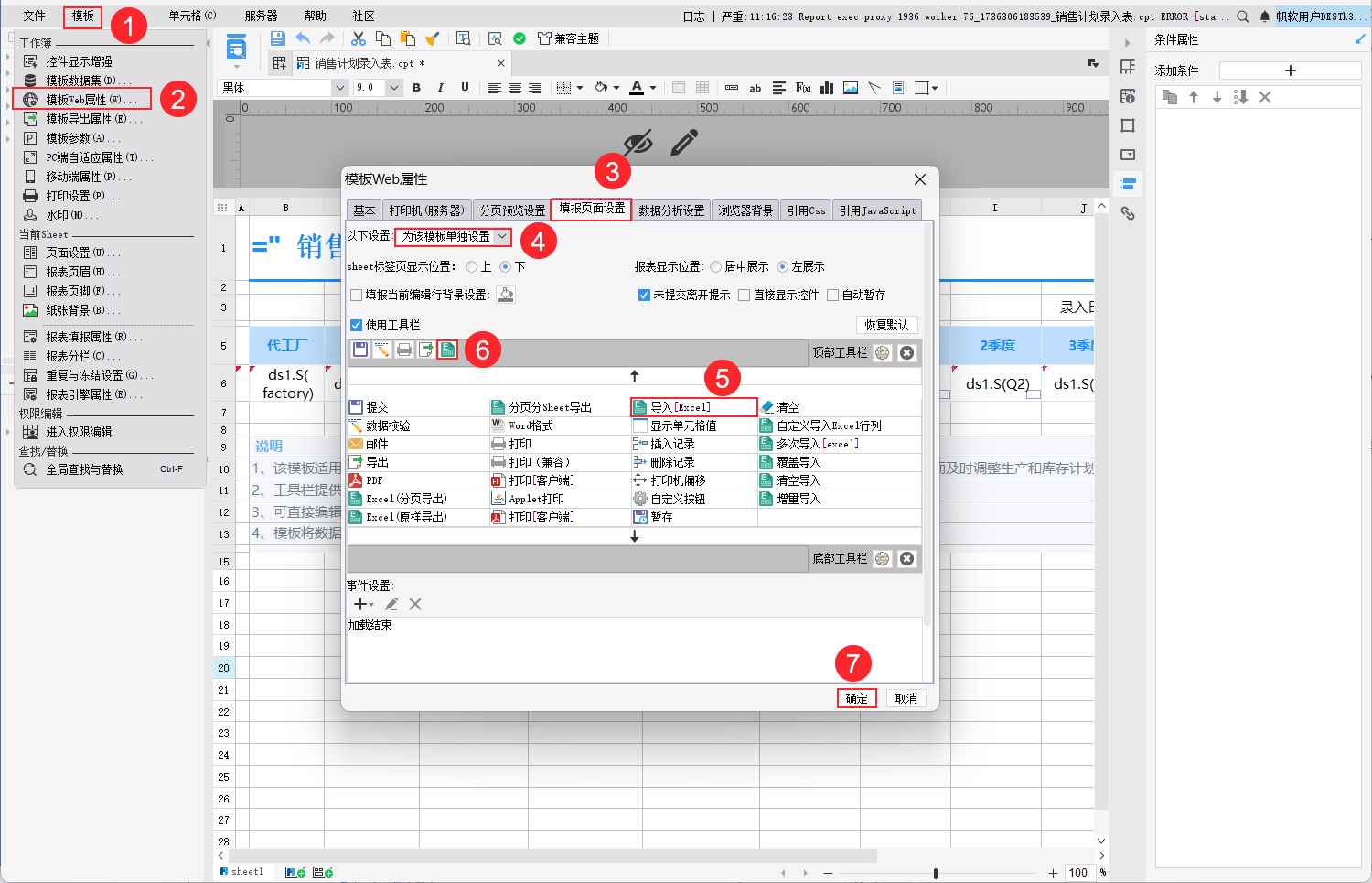 直接将Excel导入按钮添加到填报预览页面的工具栏即可,如下图所示: