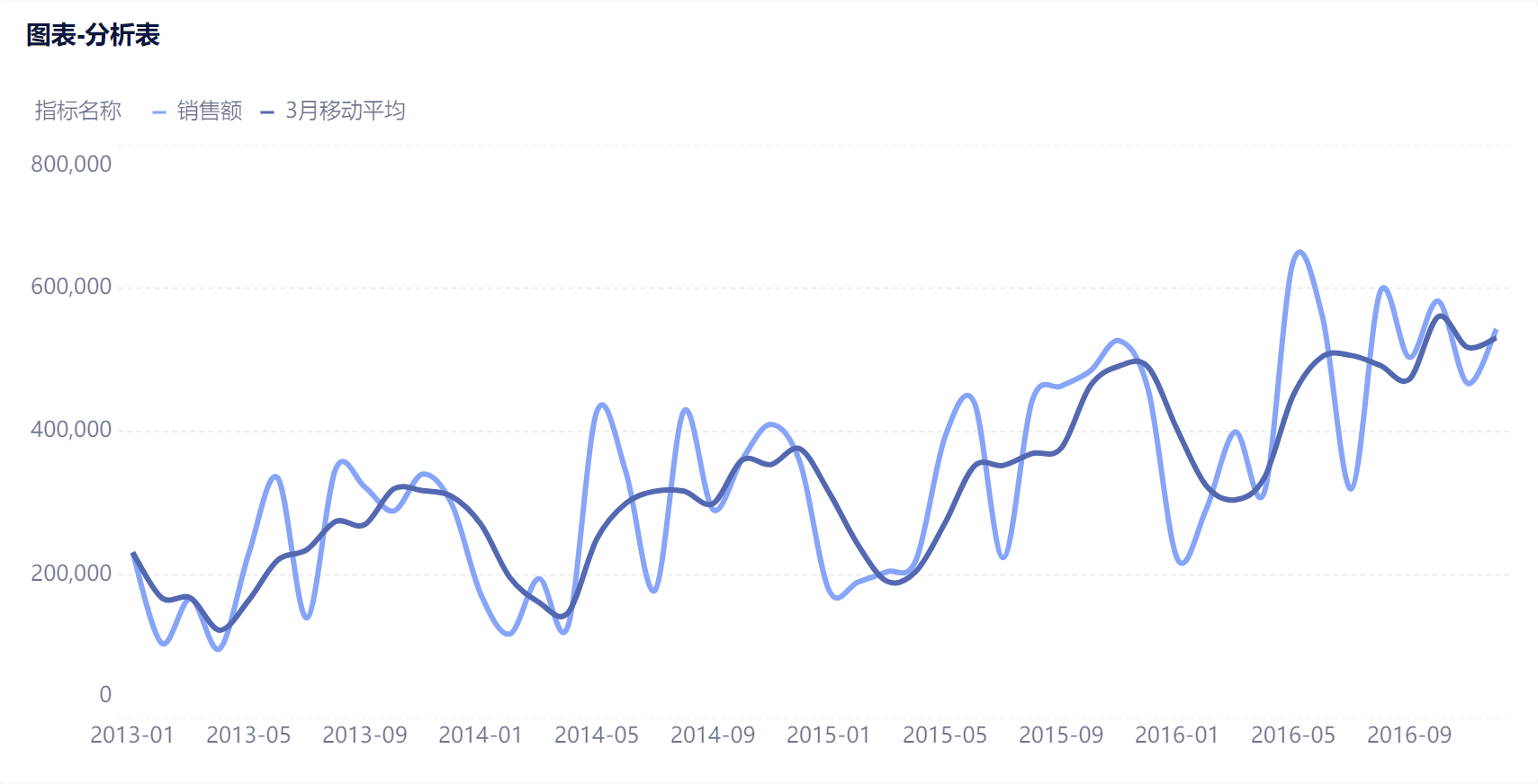 基于一定的时间窗口内的数据进行平均处理。例如:5日移动平均、10日移动平均、30日移动平均、3月移动平均等。