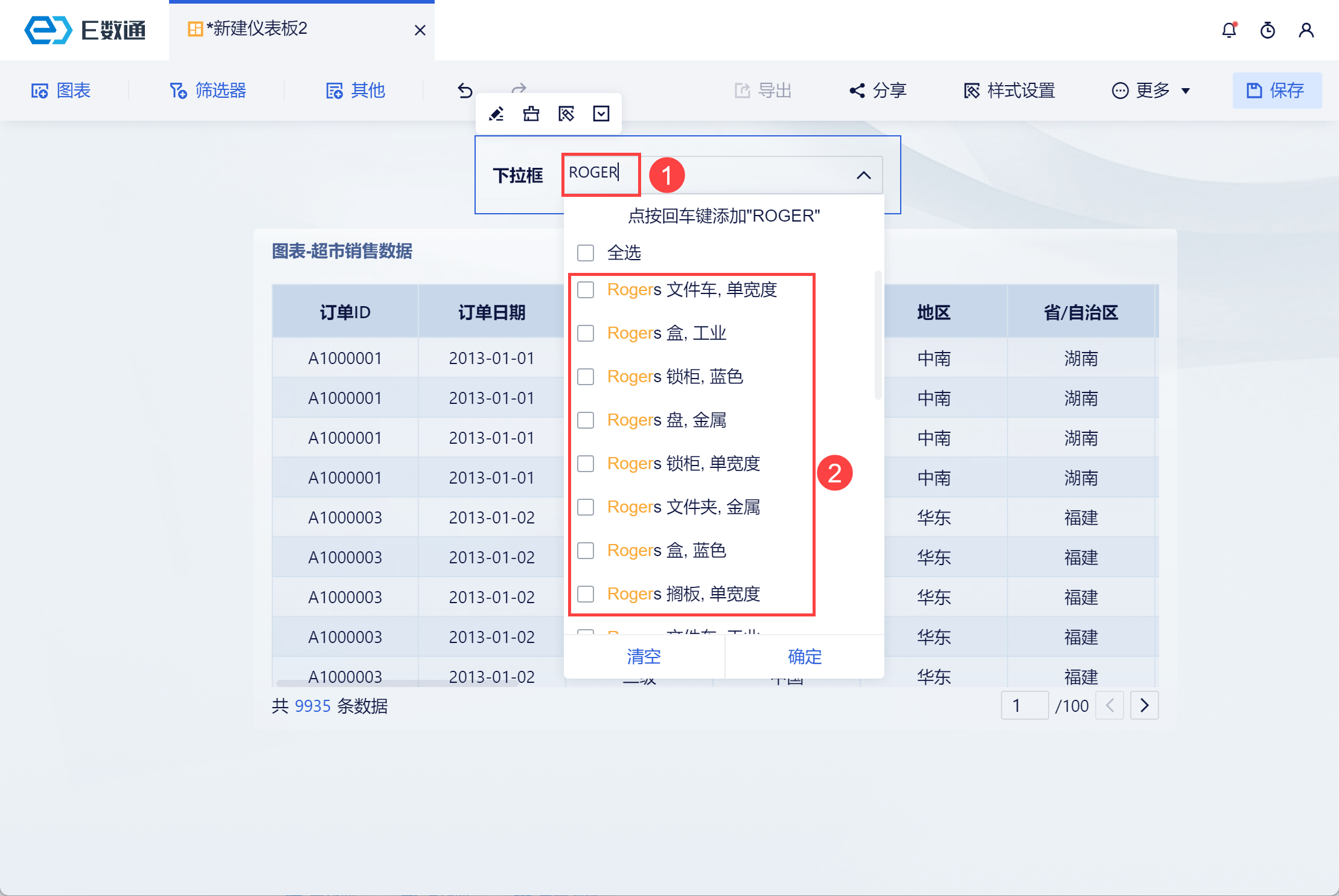 1)例如,在仪表板的文本筛选器中输入「ROGER」,列表中会展示「Rogers」的相关信息。如下图所示: