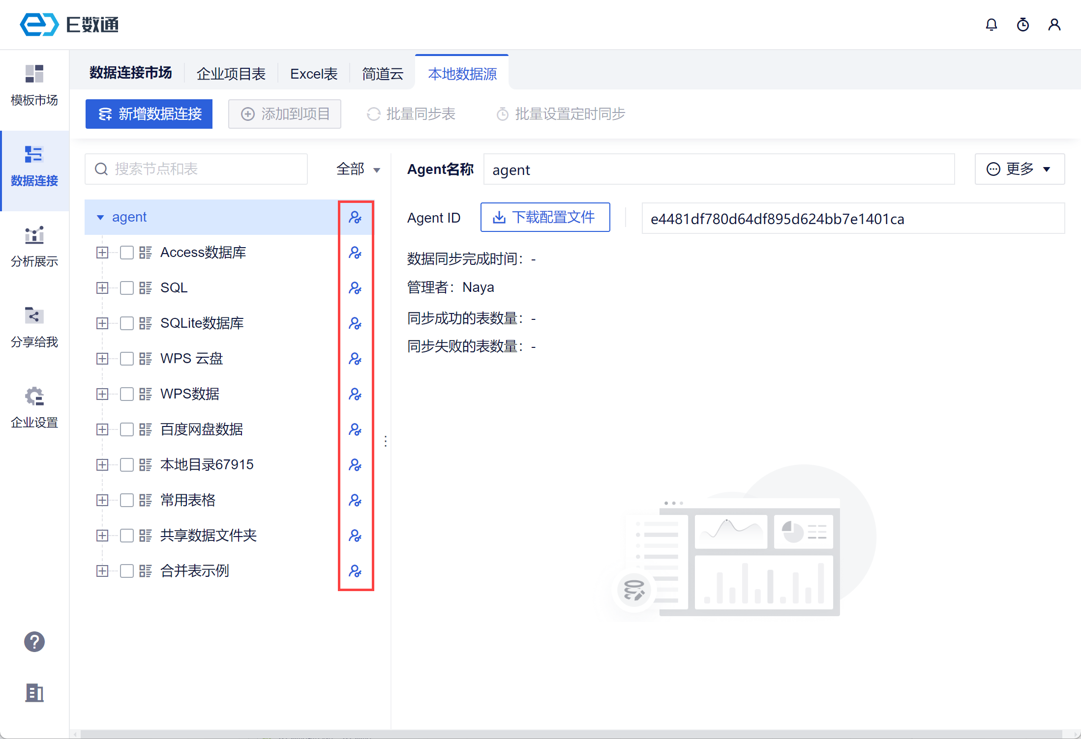 用户需要将本地的 Excel 数据上传至 E 数通中进行分析,但本地数据会经常更新,如果一个个手动更新数据,会耗费很多时间。
