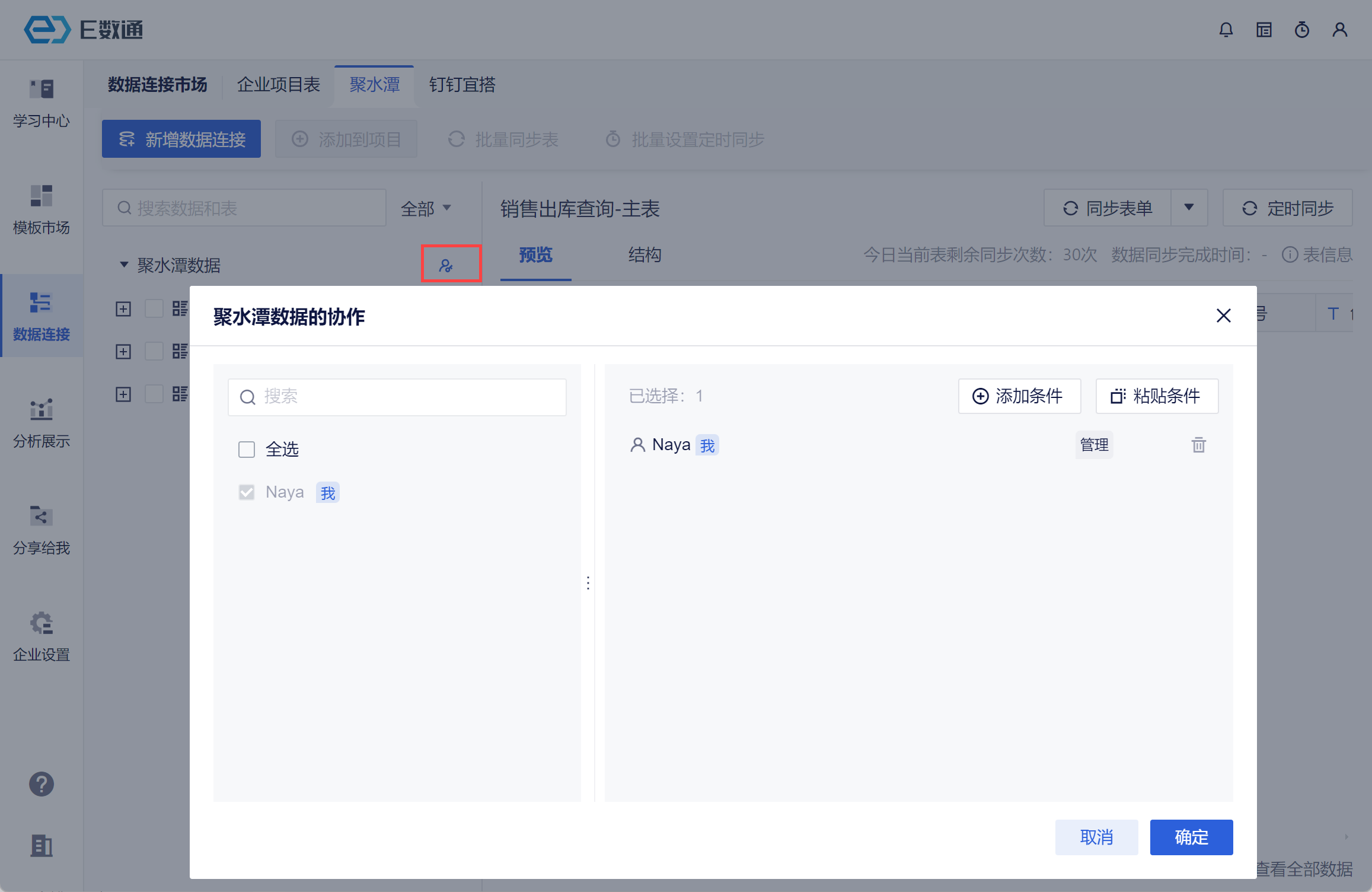 本次操作是手动全量同步,E 数通还支持批量同步,定时同步等,详情参见文档:同步数据源。