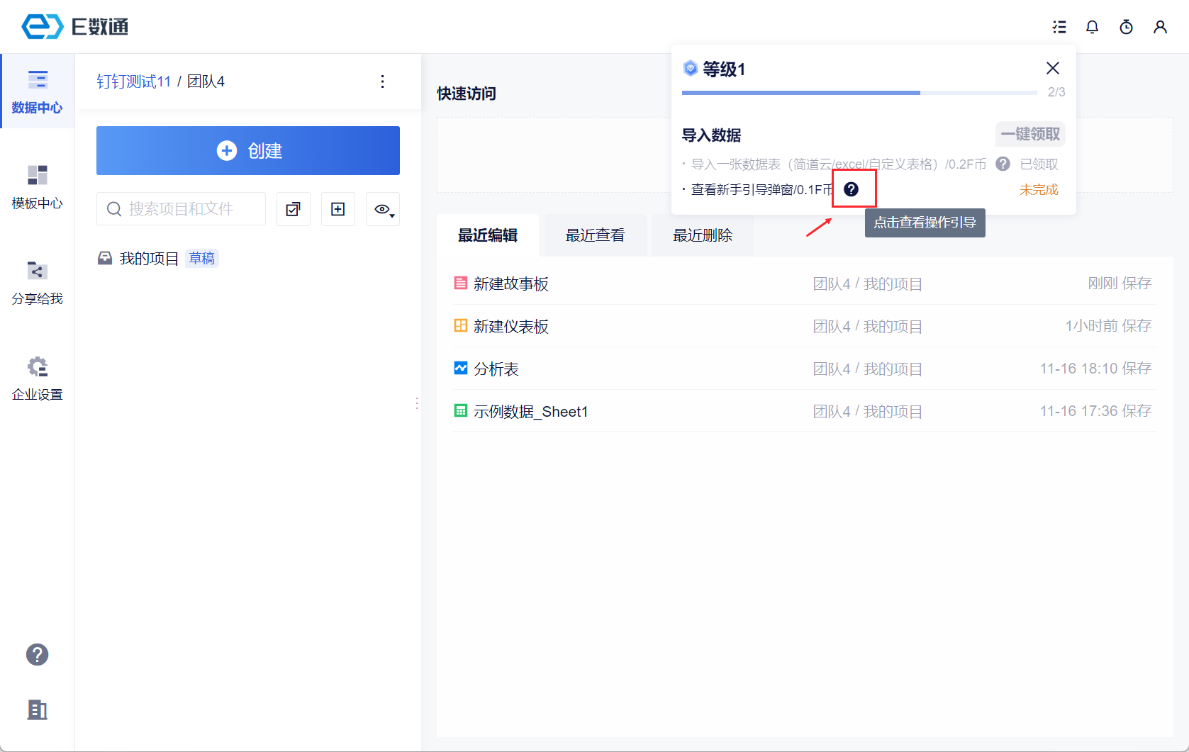 E数通提供新手引导任务,帮助用户熟悉掌握 E数通的使用。