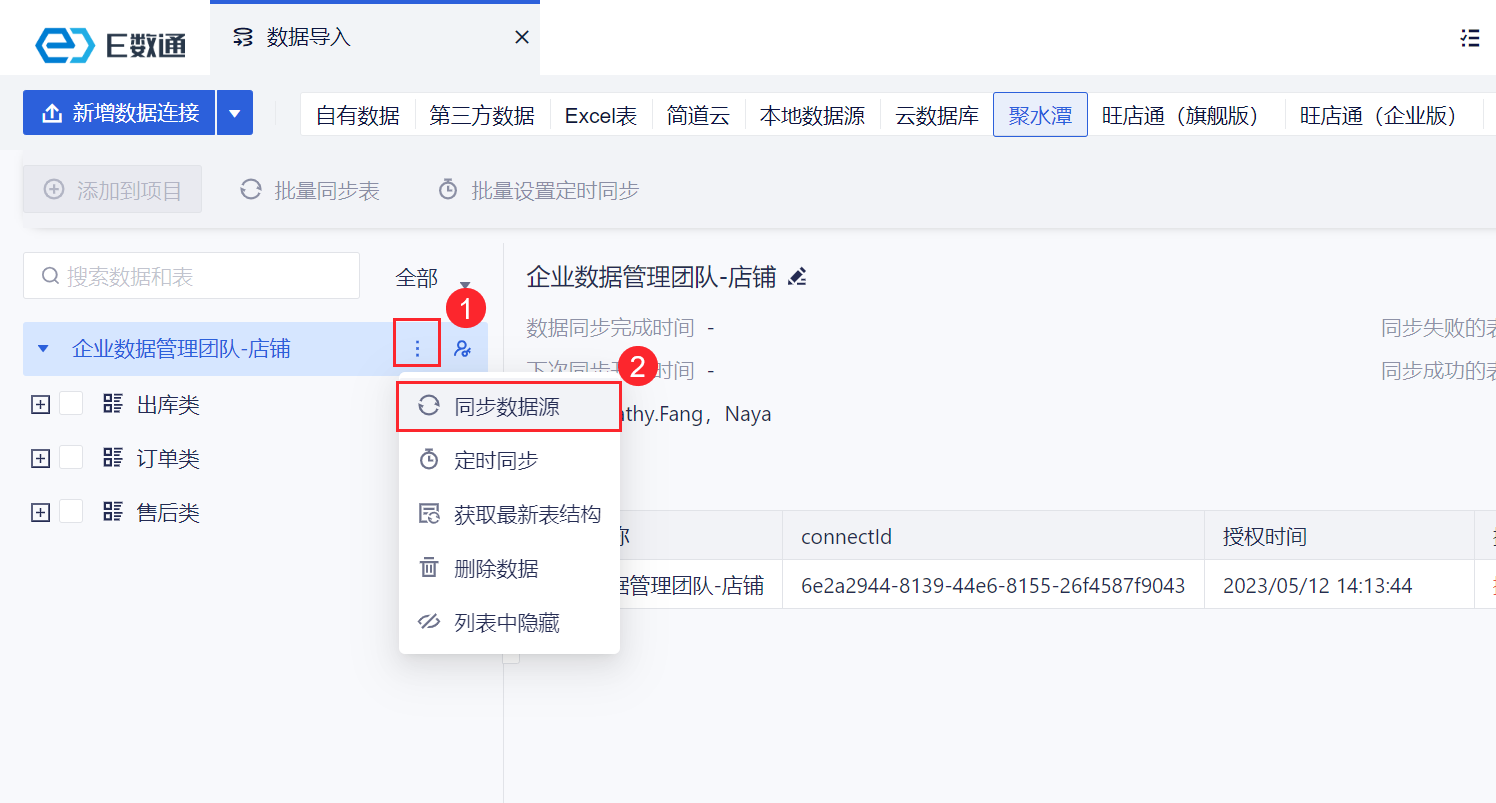 用户想要将聚水潭数据获取至 E数通,在 E数通中进行数据的处理和分析。