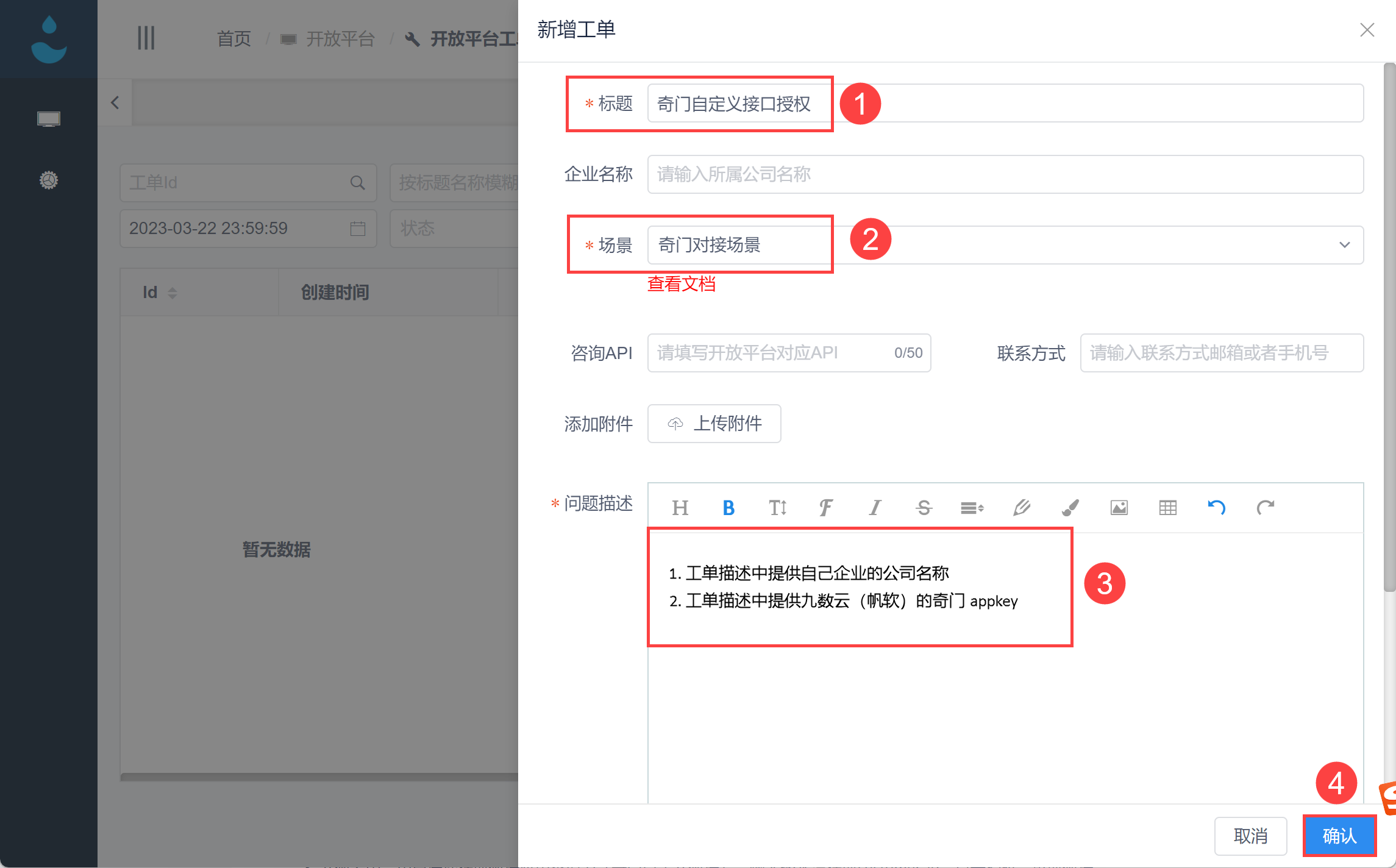 4)若有有淘宝店铺的商家需要走使用「奇门自定义数据」,进入聚水潭开放平台后,在聚水潭内提交工单获取 customer_id,在 E数通中通过 customer_id 进行授权;