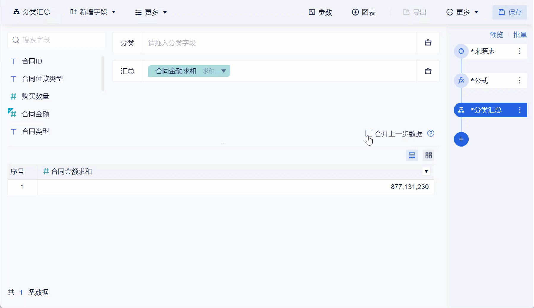 2)分类汇总步骤的「合并上一步数据」中,也可以使用「shift+点击全选」进入「新增字段自动勾选模式」,如下图所示: