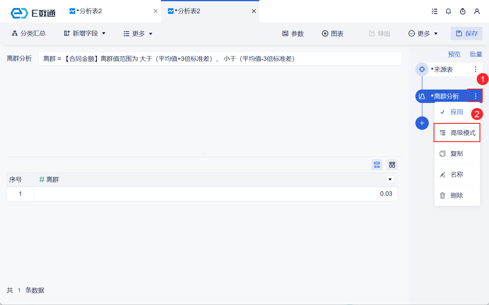 点击右上角的「保存」即可保存分析表,如下图所示: