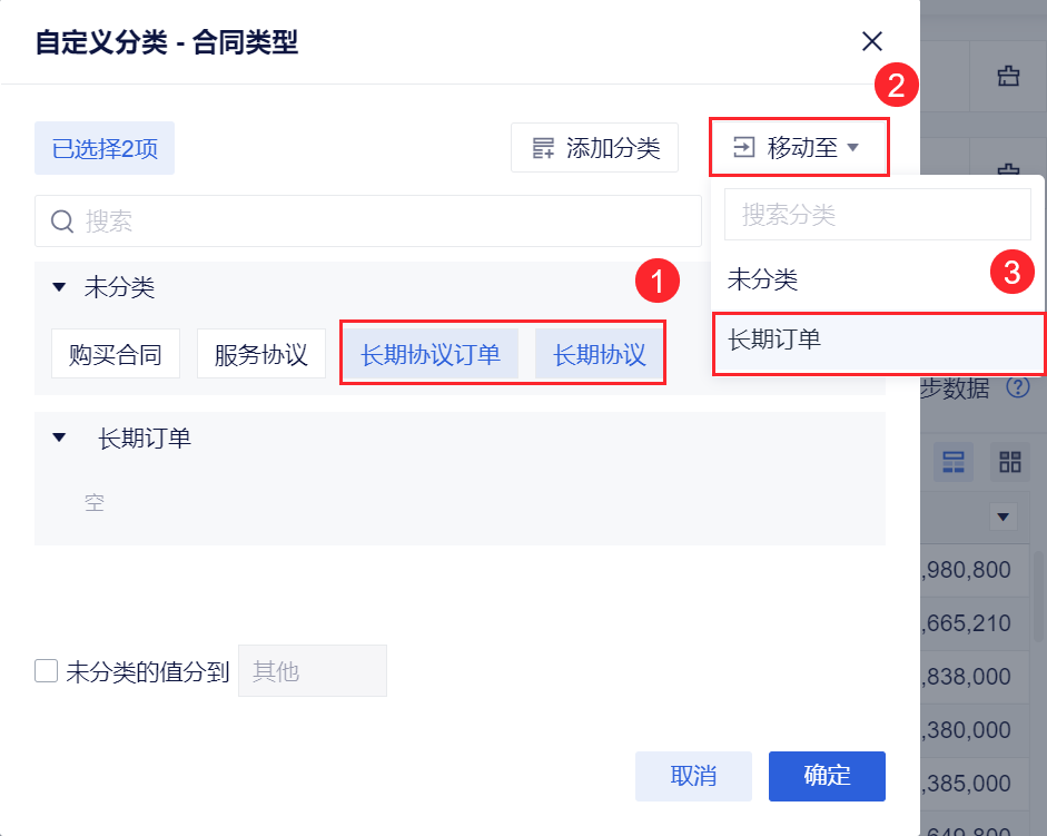 2.3.2 将「合同类型」自定义分为「长期订单」和「短期订单」两组