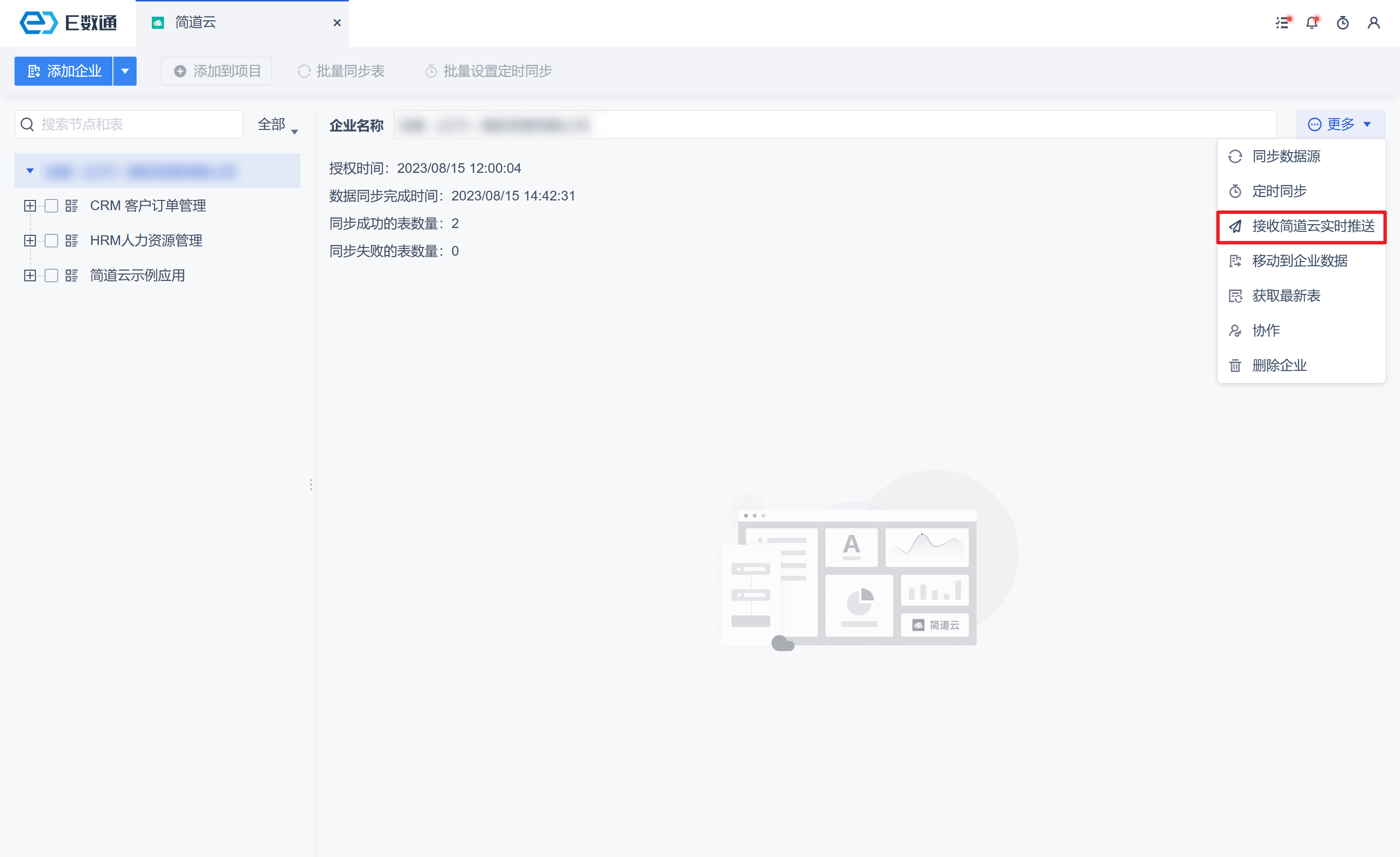 这里的实时推送数量是指同一个企业下,不同团队中所有授权的简道云企业数量。