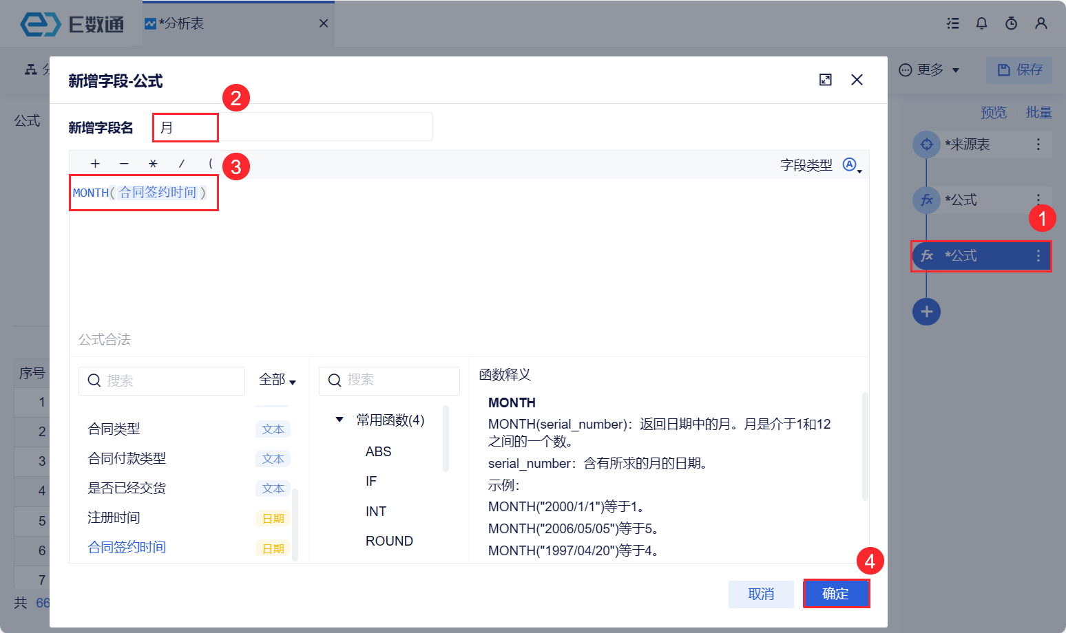 3)再用 MONTH 函数,获取字段值中的月份值。如下图所示: