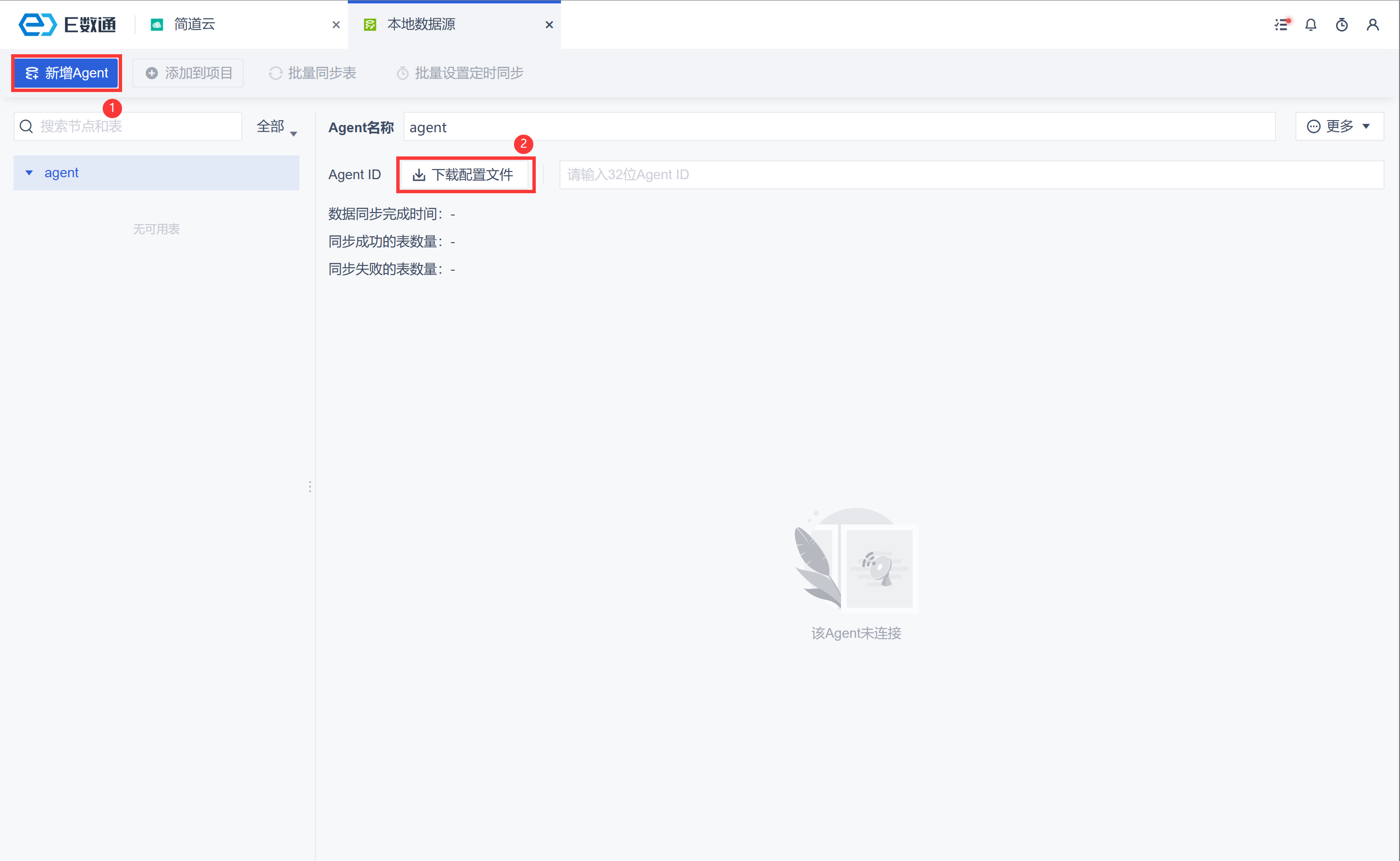 注:请确认数据源标识(agentID)是否与E数通节点的 agentID 是否一致,不一致的话需要重新导入。