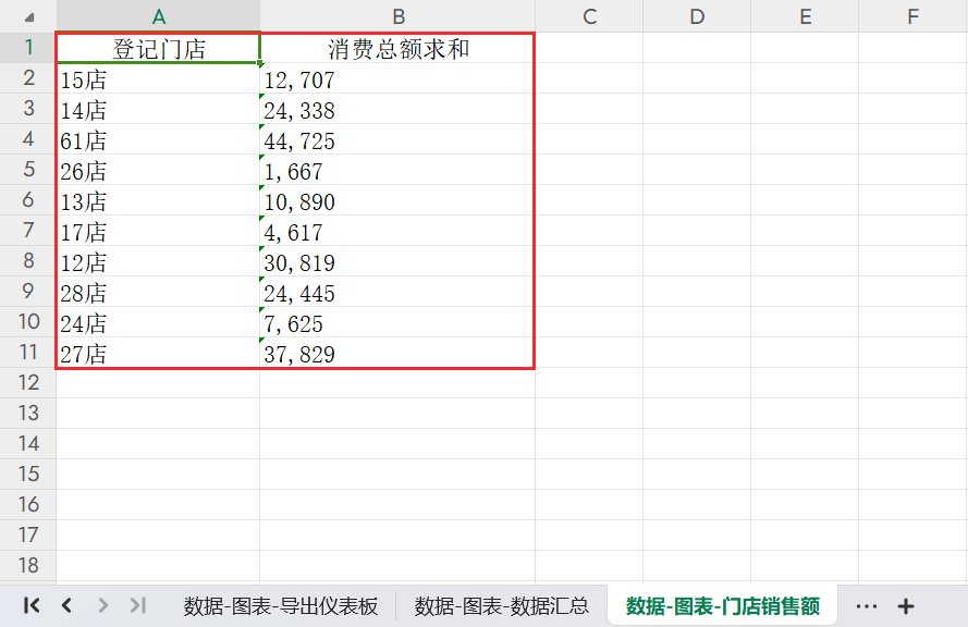 例如过滤了 11 店、30 店、25 店的数据,在导出的等级门店销售额这个数据中就不包含这些店铺,如下图所示: