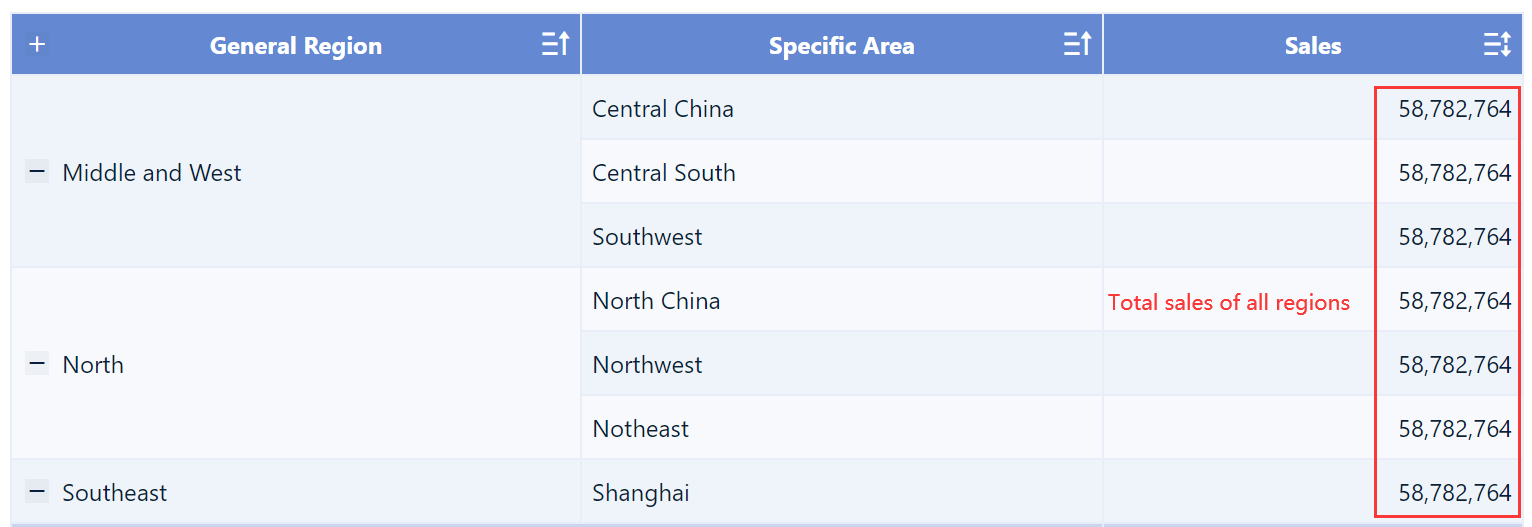 For example, you may want to display the total sales of all regions, as shown in the following figure.
