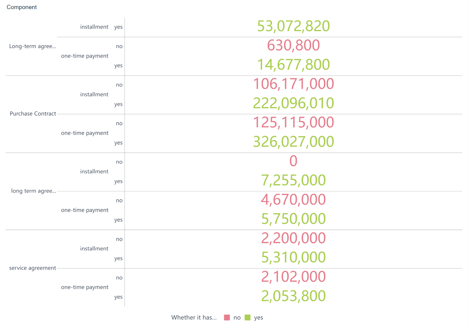 Color tables are used to display different text colors corresponding to different dimensions. For example, different colors are used to show whether the contract items have been delivered, as shown in the following figure.