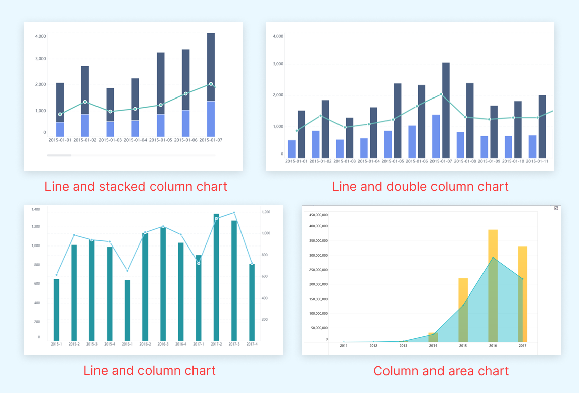 When multiple indicator fields are dragged into the vertical axis, the chart of each indicator can be set separately.