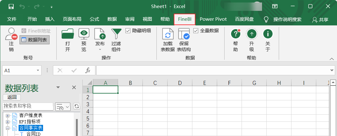FineBI For Excel 插件的界面如下图所示: