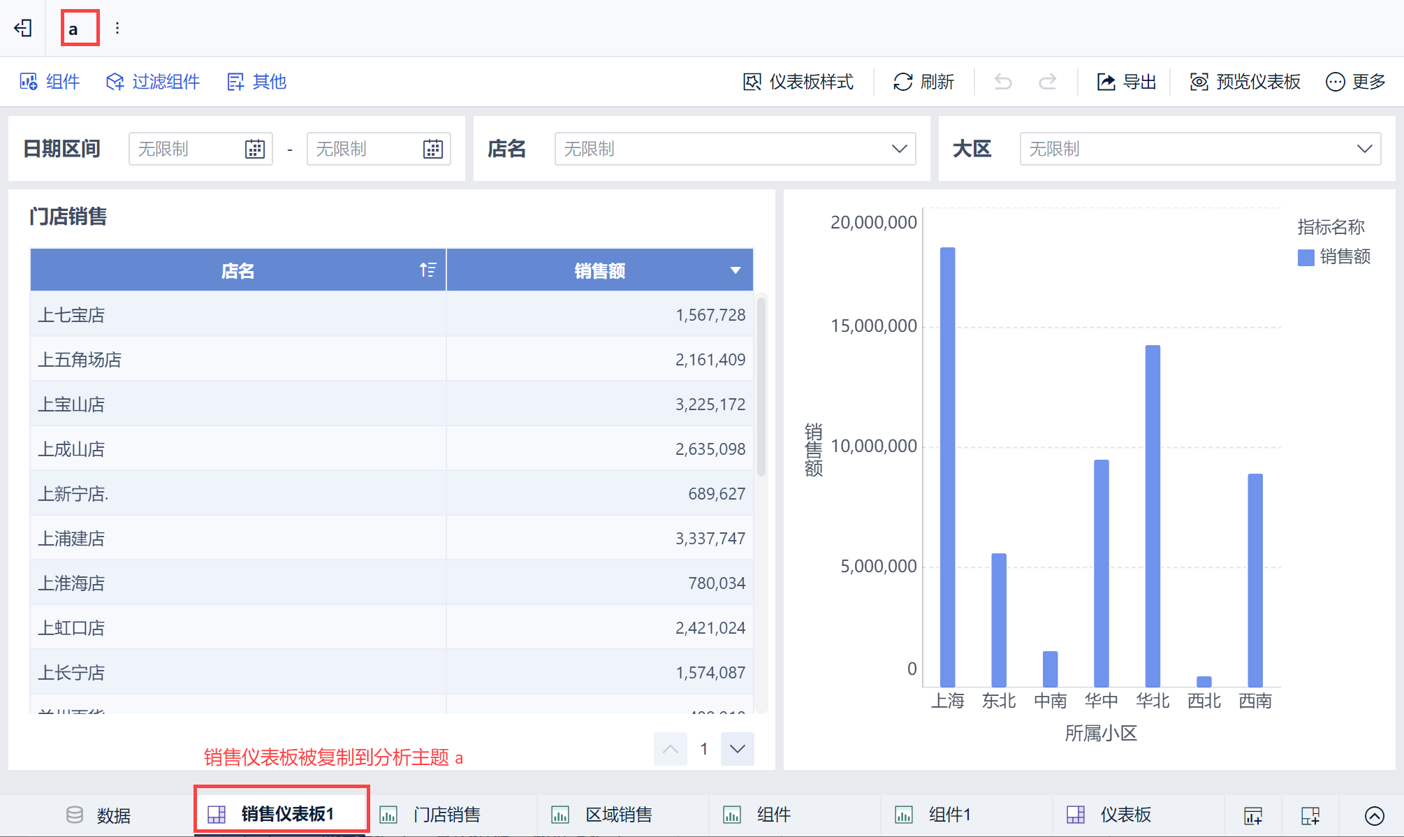 仪表板被复制一张到当前分析主题,如下图所示: