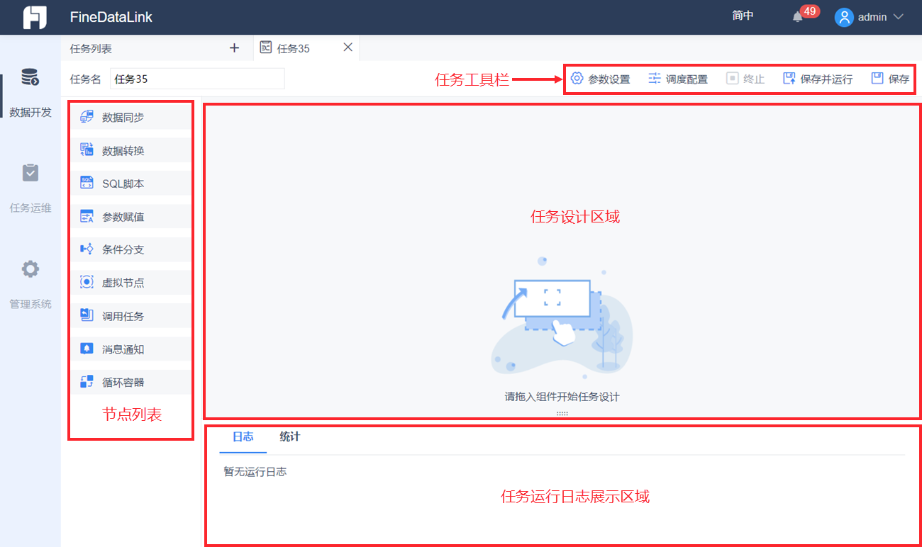 本文将详细介绍 ETL 任务开发界面各个模块的功能,并提供一些节点设计的基本操作方法。