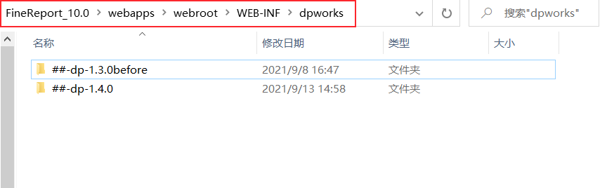 ETL 作业中的任务保存在路径:FineReport_10.0\webapps\webroot\WEB-INF\dpworks下,如下图所示: