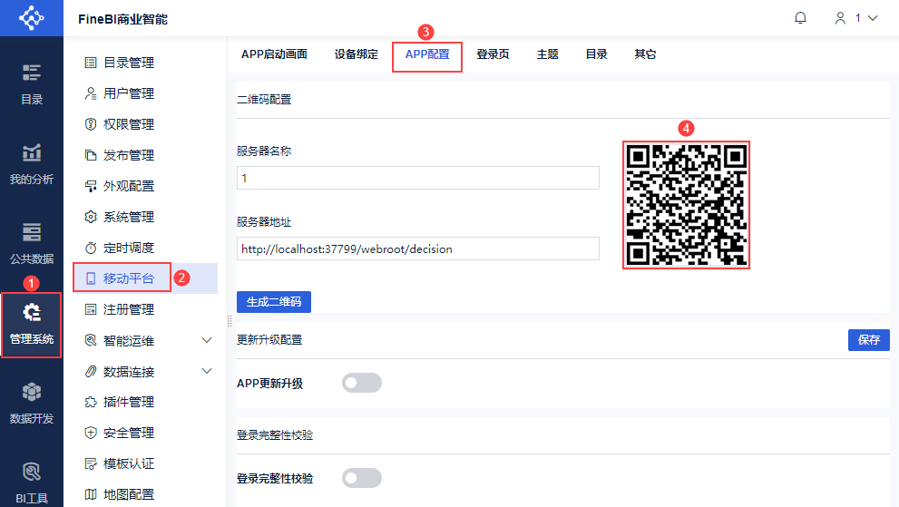 若「管理系统>移动平台>APP配置」中生成了二维码,如下图所示: