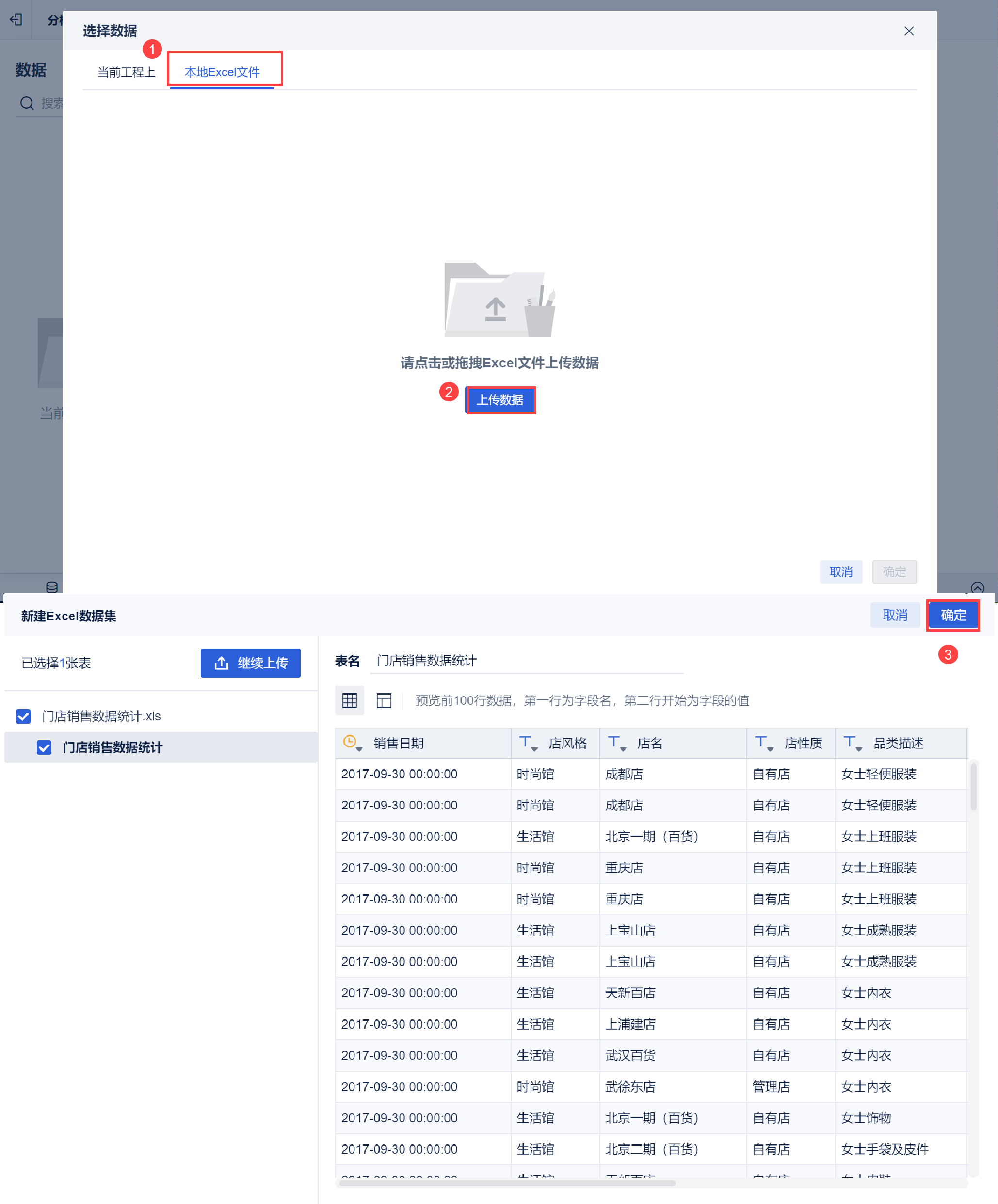 示例上传Excel 数据「门店销售数据统计」,如下图所示:
