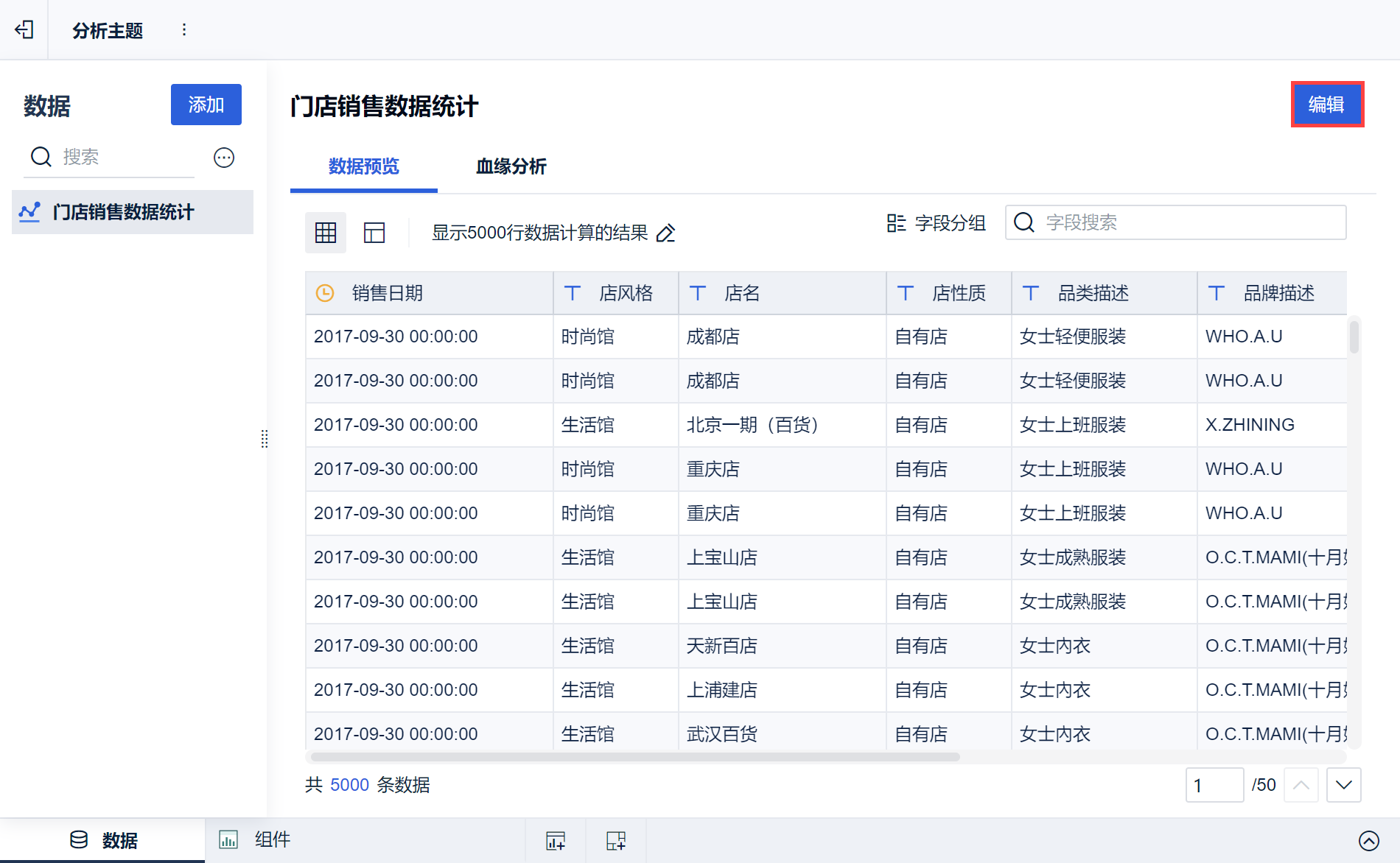 若需要对数据进行进一步编辑,可以点击右上角的编辑按钮,进行处理,详情参见自助数据集,如下图所示: