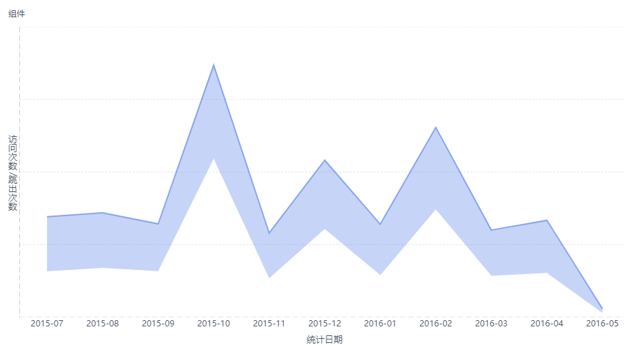 例如:已知网页的访问次数和跳出次数,两条线勾勒出的范围非跳出次数的变化量趋势,如下图所示: