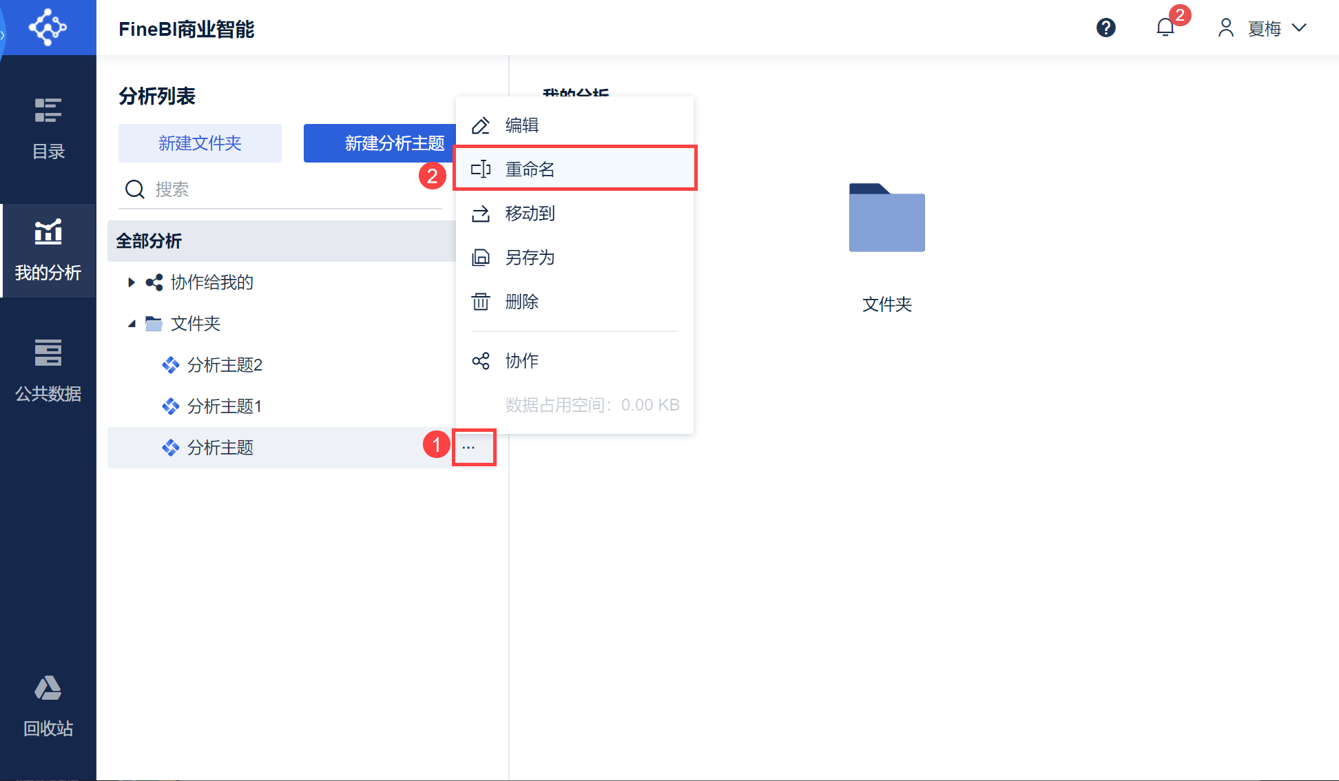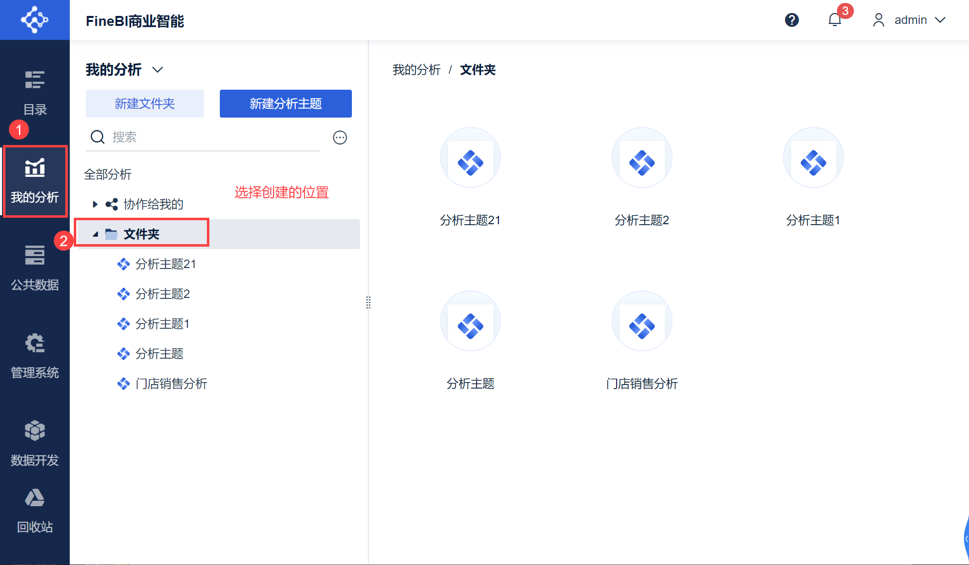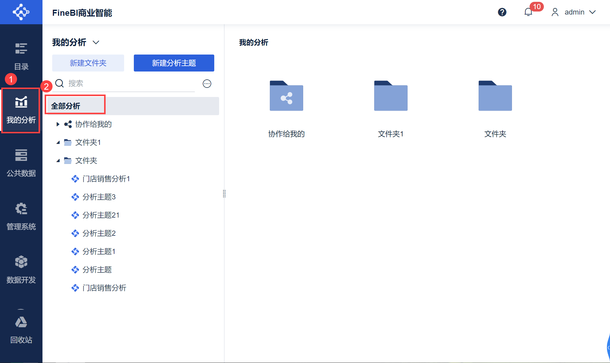 FineBI 支持通过文件夹分门别类的存放分析主题;