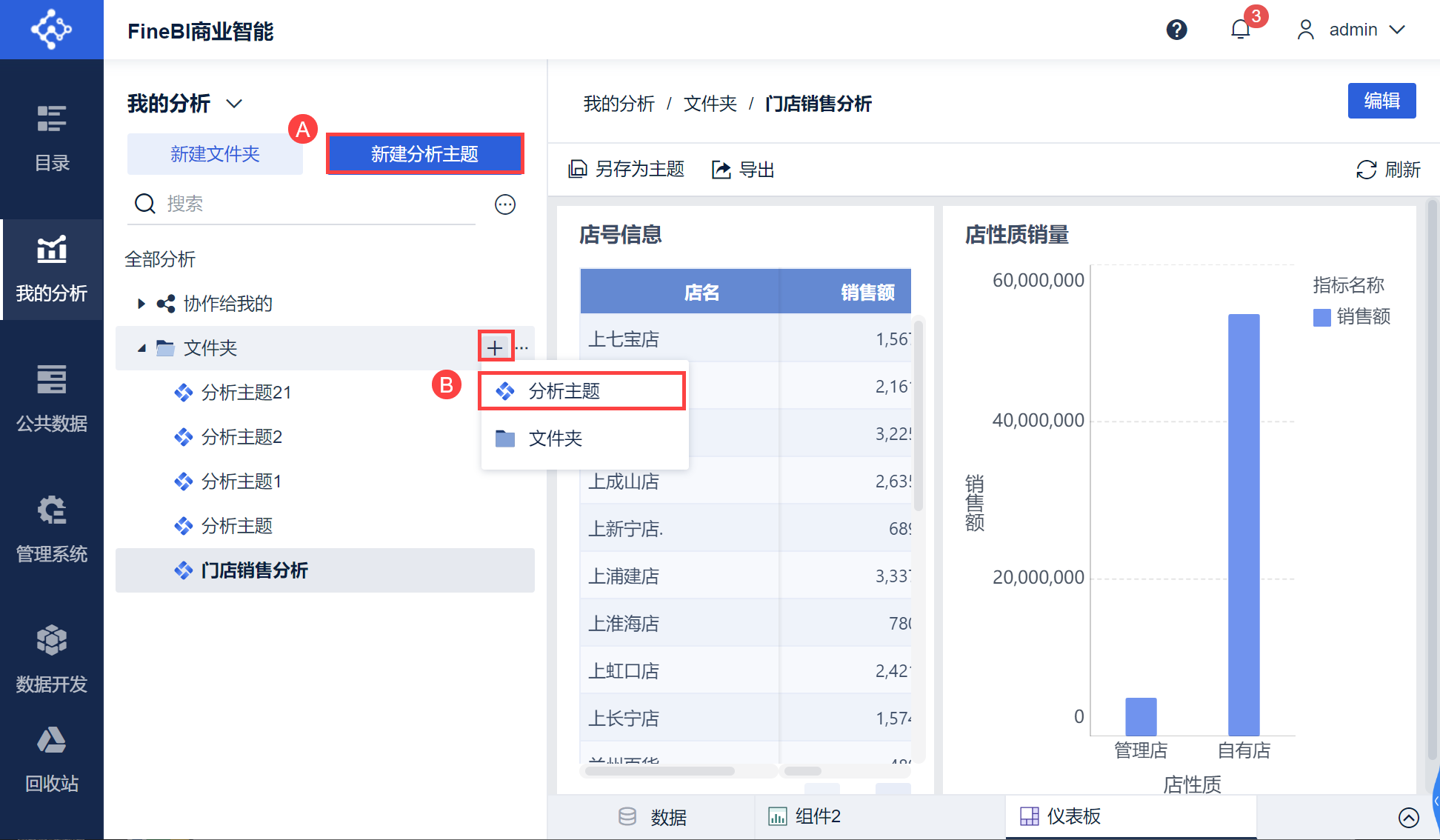 你在 BI 中进行的数据分析和可视化展示都是通过「分析主题」进行的,此时就需要对制作好的分析主题进行管理。