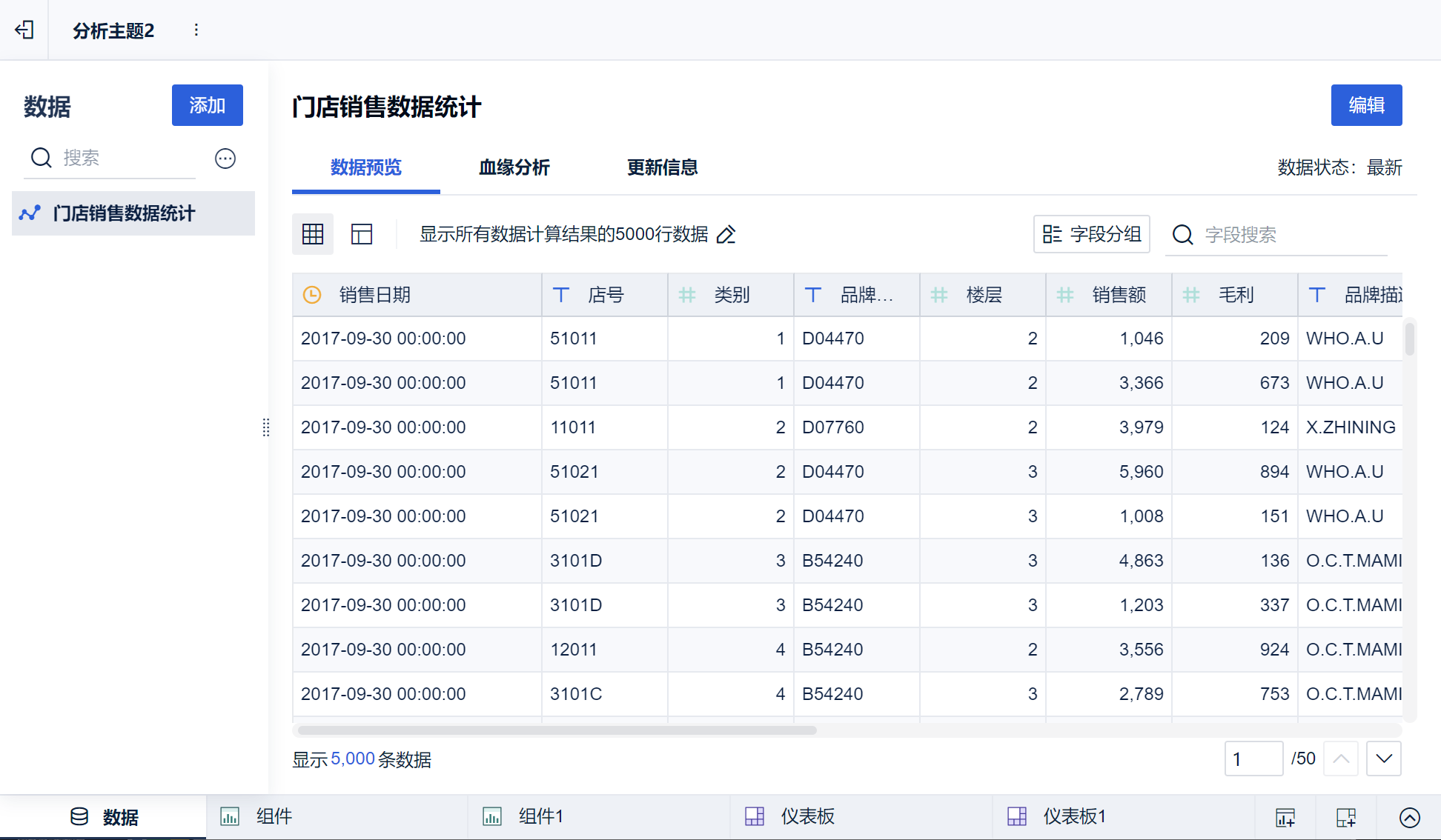 点击分析主题可以进入该分析主题的预览界面,如下图所示: