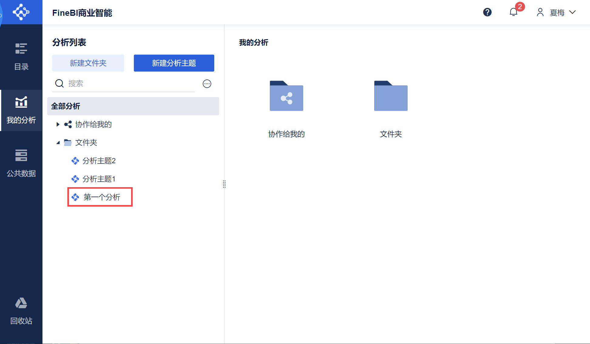 进入「我的分析」下的指定文件夹,如下图所示: