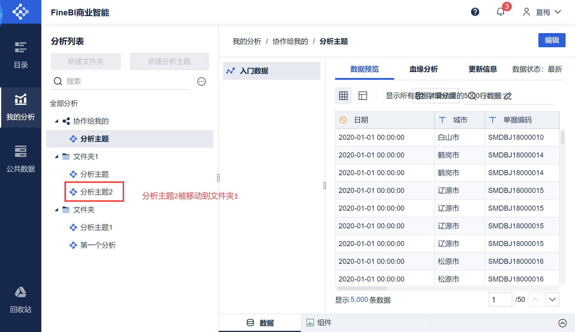 分析主题被移动到了指定文件夹中,如下图所示: