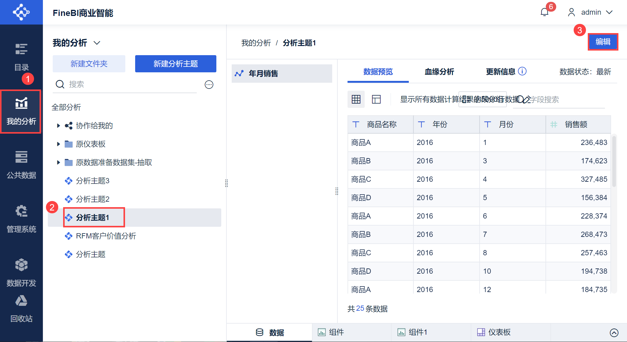 选中分析主题后,点击「编辑」进入编辑界面,如下图所示: