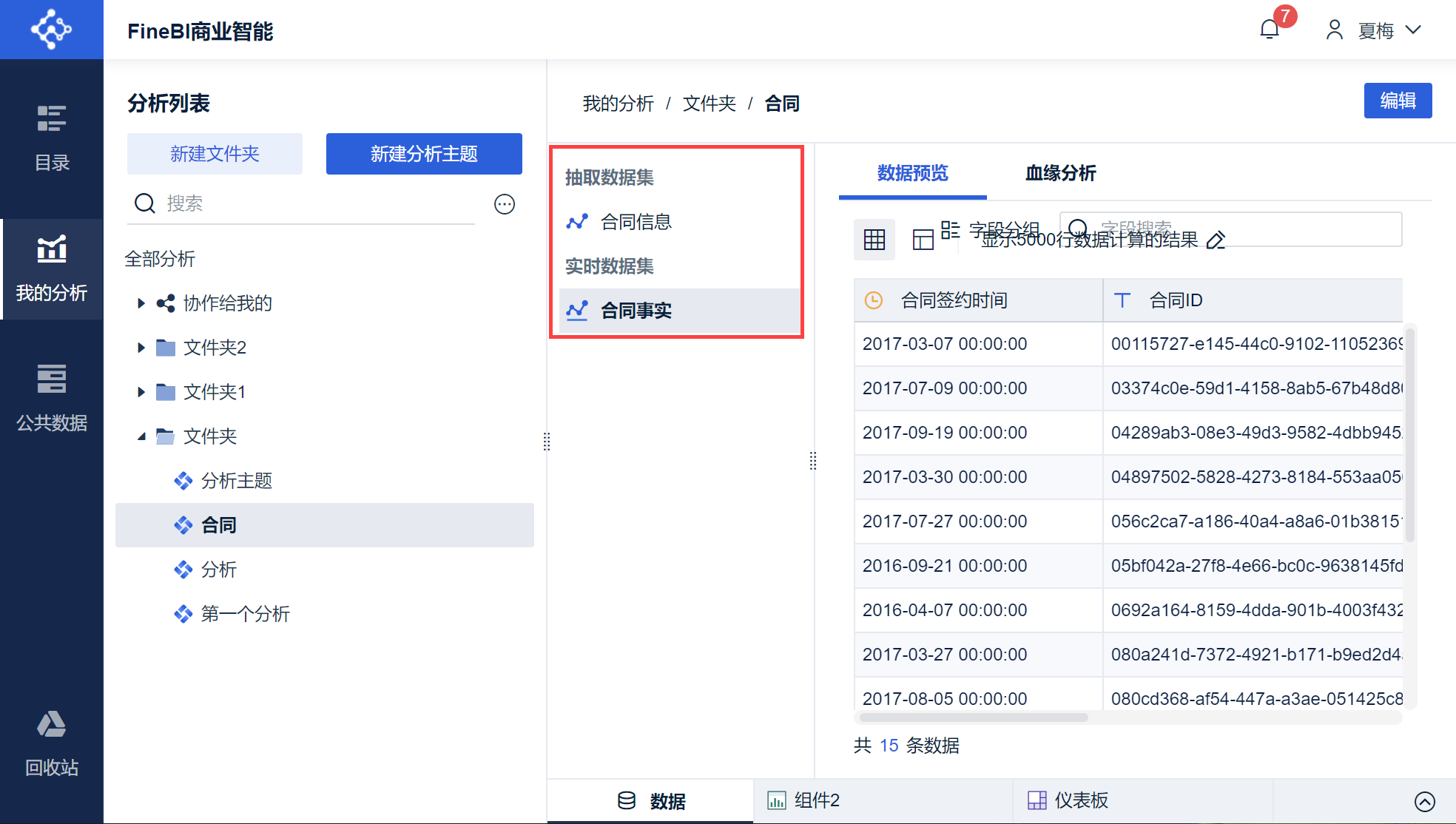 我的分析下的分析主题和文件夹支持协作给其他用户,共享分析主题内的数据、组件和仪表板,从而实现仪表板的协同编辑。