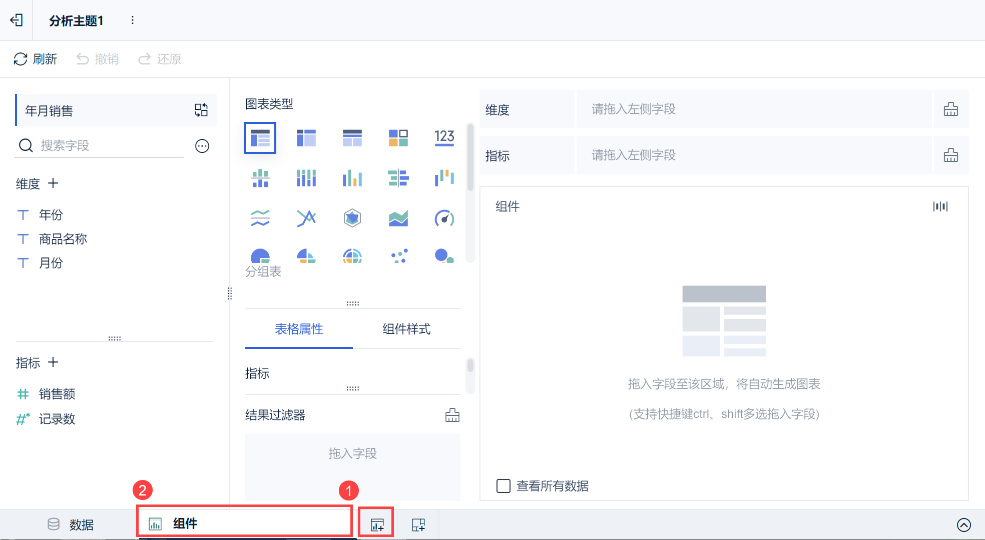 注:字段类型为「数值」时不能作为维度进行分析,只能作为指标进行分析。
