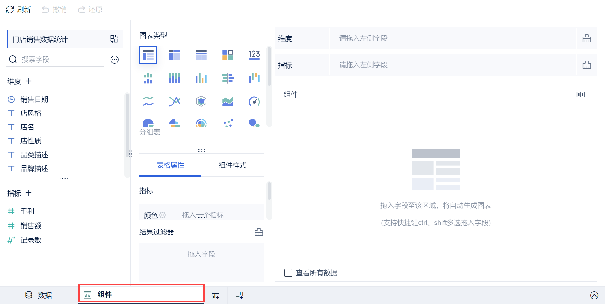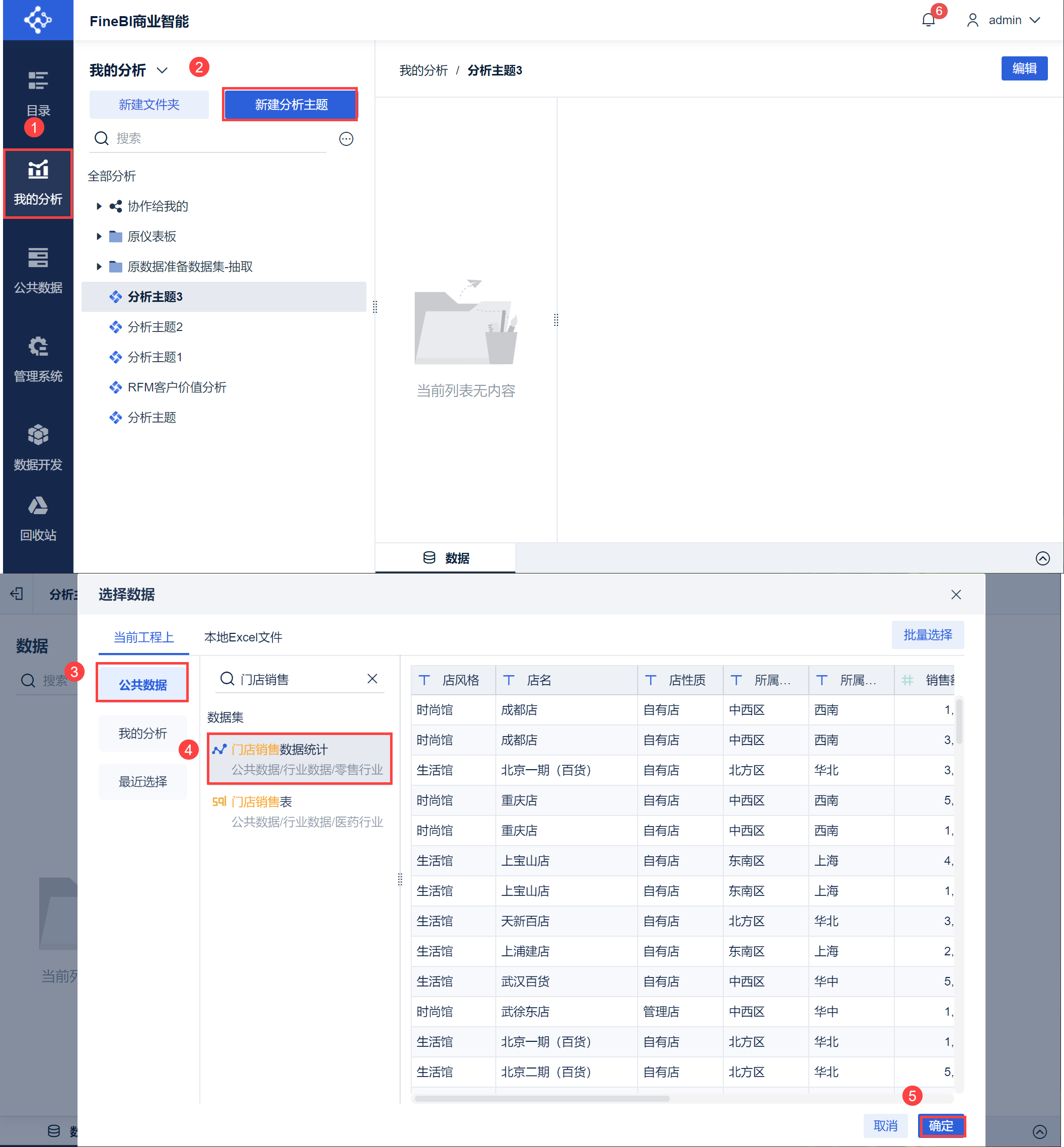 新建分析主题,将「门店销售数据统计」添加至分析主题中,如下图所示: