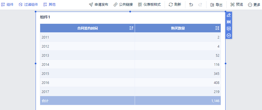 点击组件,选择下拉>查看明细,即可出现图表所用的原始数据表。如下图所示: