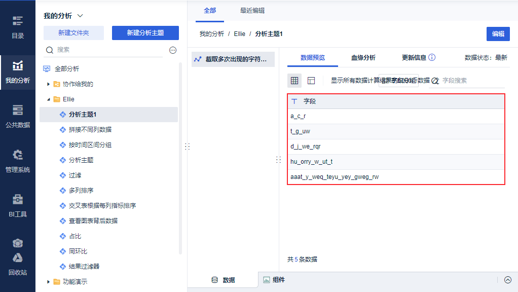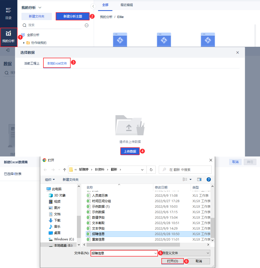 新建分析主题,上传下载的示例数据,默认勾选所有字段,如下图所示: