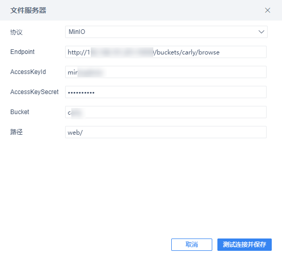 选择MinIO协议时,界面如下图所示: