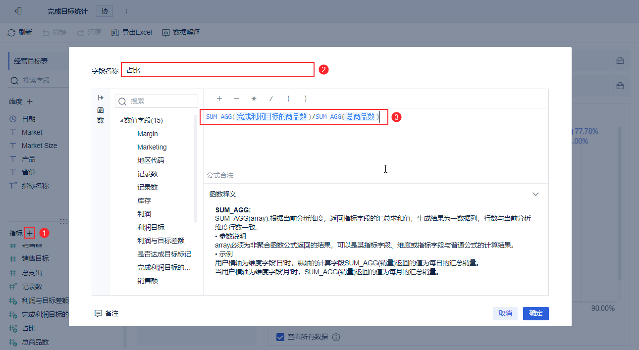 | SUM_AGG(利润目标) | 求利润目标的和 | SUM_AGG 求和 |