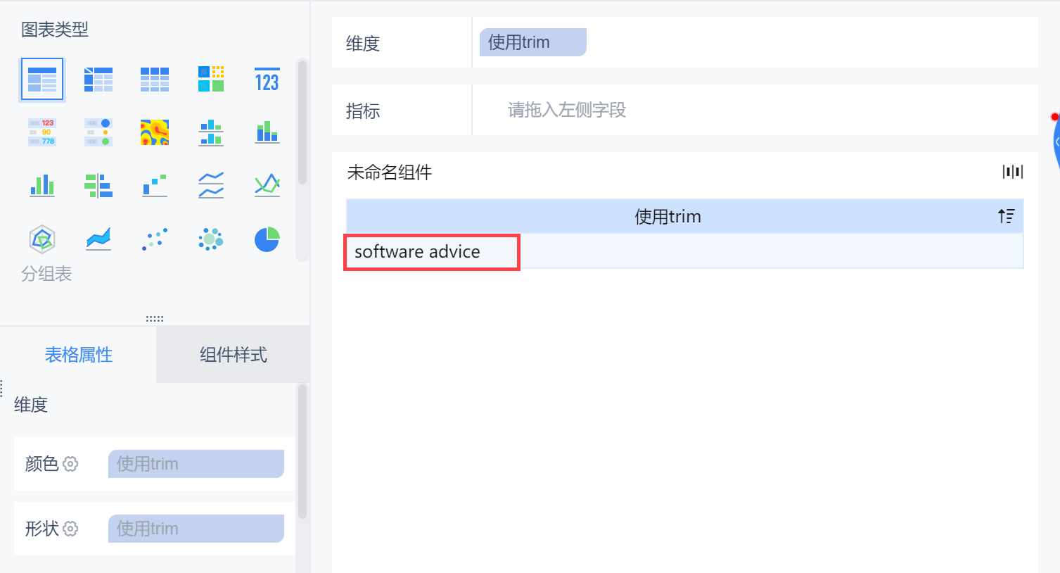 例如将「 software advice 」中的前后空格都去掉,可以新增计算字段,输入公式:TRIM(" software advice "),如下图所示:
