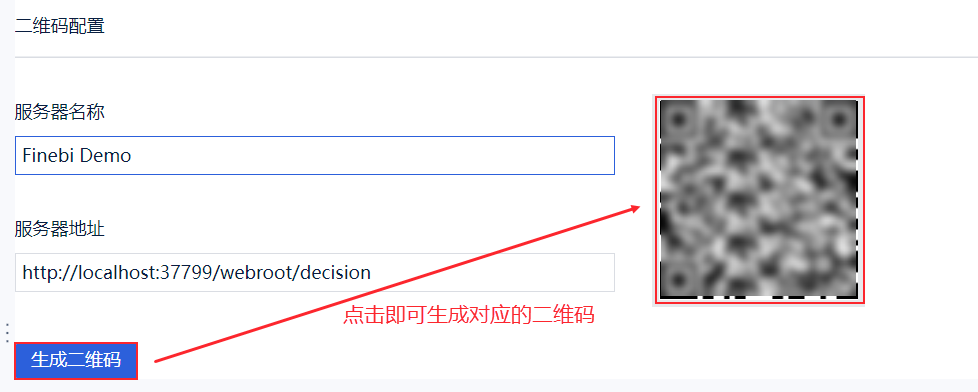 设置好服务器名称和服务器地址后,点击生成二维码,右侧即可生成该服务器信息对应的二维码,如下图所示: