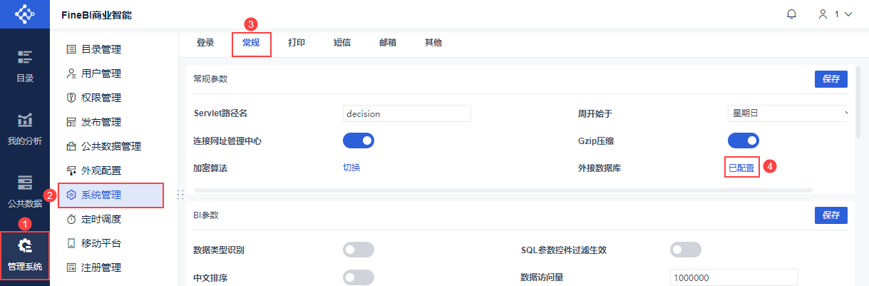 BI 系统配置外接数据库后,遇到集群环境或数据量较大情况时,可保证 BI 系统的稳定性。