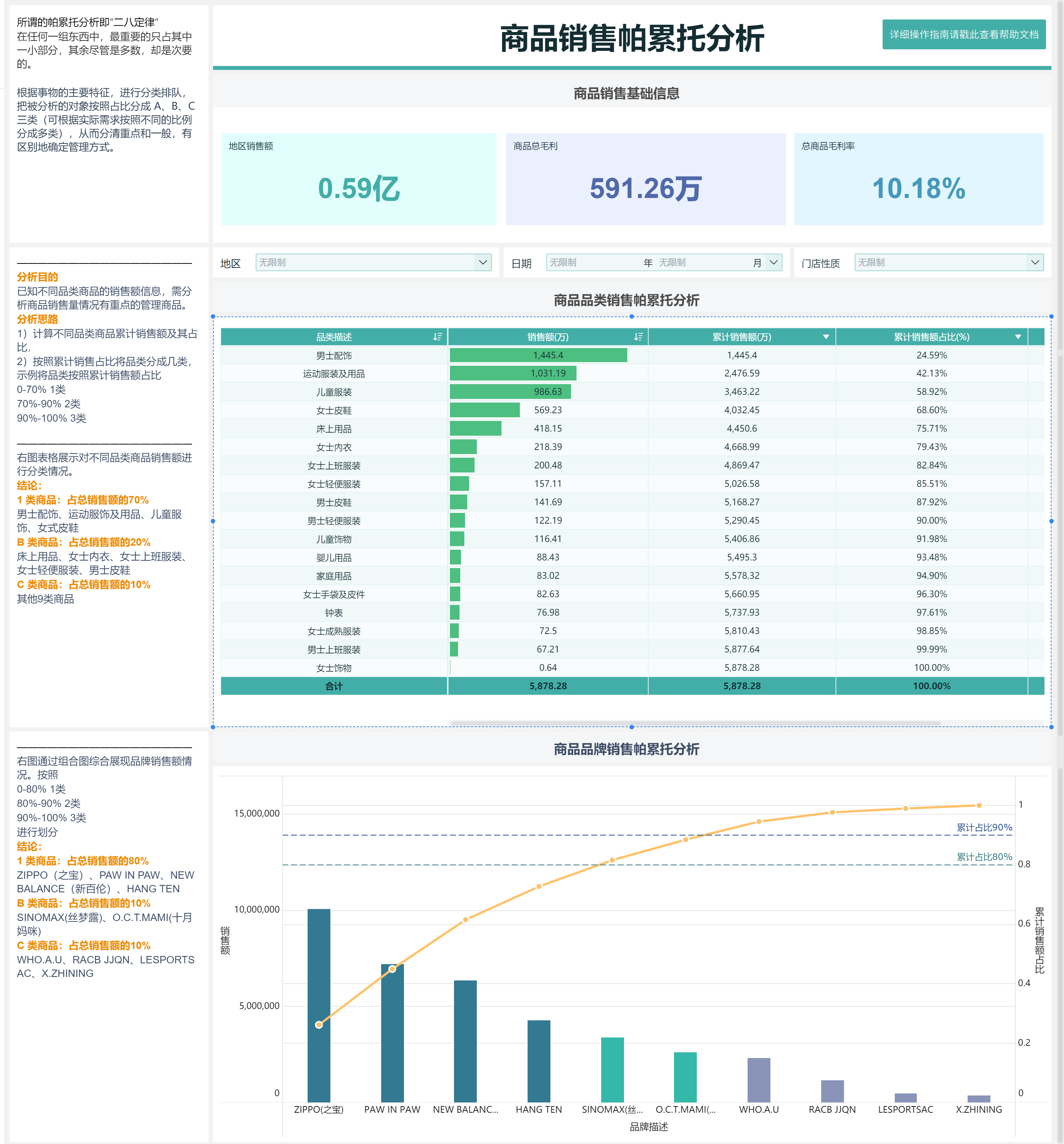 帕累托分析又叫 ABC 分析,分类的核心思想:少数项目贡献了大部分价值。以款式和销售量为例:A 款式数量占总体 10% ,却贡献了 80% 的销售额。