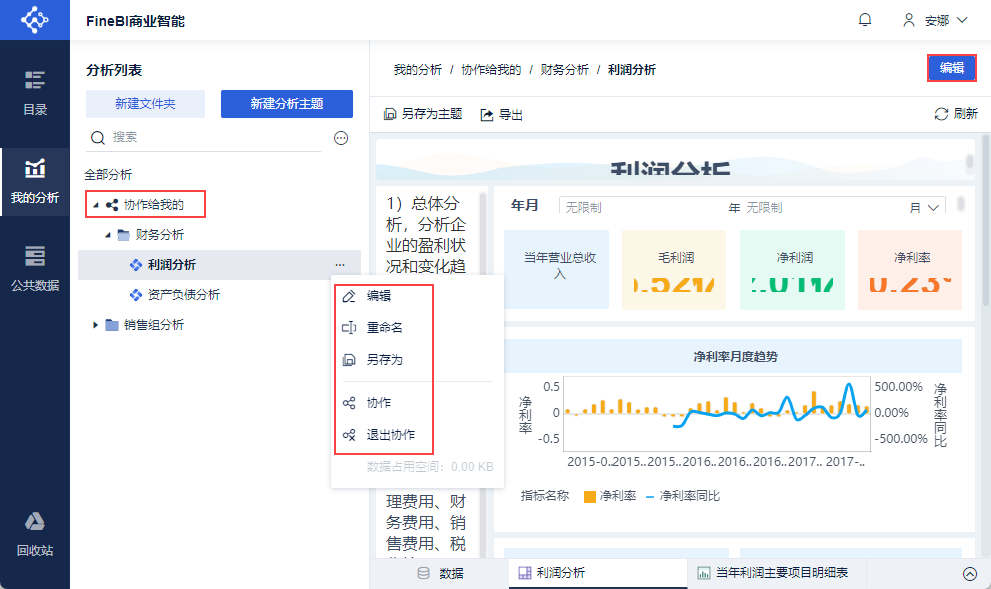 根据对方给予的权限,可对主题进行编辑、重命名、另存、协作、退出协作。如下图所示: